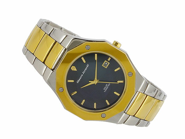 ■ マウロ ジェラルディ MAURO JERARDI ソーラー メンズ 腕時計 MJ032-1 について マウロ ジェラルディ MAURO JERARDI ソーラー メンズ 時計イタリアンブランド、Mauro Jerardiから高機能ソーラームーブメント搭載モデルが登場。プレゼントやギフトにもおすすめ。クオーツ、3気圧防水、ソーラー、日付カレンダー、ベルト連結ピン:ロックピン、カラー:ブラック(文字盤)、ゴールド×シルバー(ベルト) ■ 納期・在庫について 納期目安は、実際の在庫状況によって前後する場合がございます。お急ぎの際はお気軽にメール、お電話にてお問い合わせください。また、ご注文が重なった場合在庫切れ表示が間に合わない場合が稀にございます。万一の際は何卒ご容赦ください。 ■ AAAnetshop(スリーエーネットショップ)について ●当店取扱の商品はすべて新品・本物となります。→100%本物宣言 当店は、1955年の創業(会社設立1989年)以来、ブランド品の豊富な取扱実績があります。楽天市場においては、2003年よりブランド品の販売を行ってきました。特に、腕時計の事ならAAAnetshopにお任せください。卸会社のメリットを生かして、最新モデルはもちろん、国内未発売の海外モデル、限定モデルなどを世界中から調達。ダイバーズウォッチ、スポーツウォッチ、アウトドアウォッチ、アンティークウォッチなど色々な腕時計をラインナップしています。激安円高還元、格安/激安/型落ちアウトレットなど、訳ありセールも常時開催中。自動巻きって何?電池交換がしたい、という方も腕時計の事なら何でもサポートさせていただきます。腕時計セレクトにお困りの方は、かっこいい、かわいい、オシャレ、上品、ビジネス(仕事)用、高級感のあるラグジュアリースタイル、あす楽対応(即日発送)など、ご希望をお気軽にご相談ください。入学祝い、昇進祝い、進学祝いなどのプレゼント、ギフトにも腕時計は最適です。贈り物用に、名入れ刻印サービスや、誕生日、のしなど各種ラッピング、ベルトサイズ調整など、豊富なサービスでご利用お待ちしております。 ご不明な点などはお気軽にお問合わせください。 Mail:rakuten@aaa-corp.co.jp Tel:078-272-2580 営業時間 9:30-18:00(土日祝お休み)マウロ ジェラルディ MAURO JERARDI ソーラー メンズ 腕時計 MJ032-1 マウロ ジェラルディ MAURO JERARDI ソーラー メンズ 時計 イタリアンブランド、Mauro Jerardiから高機能ソーラームーブメント搭載モデルが登場。プレゼントやギフトにもおすすめ。 サイズ W43×H38×D9mm 約131g 素材 ステンレス(ケース、バンド) 仕様 クオーツ、3気圧防水、ソーラー、日付カレンダー、ベルト連結ピン:ロックピン、カラー:ブラック(文字盤)、ゴールド×シルバー(ベルト)※付属品の仕様は予告なく変更となる場合があります。 付属品 取扱説明書、保証書(保証期間:1年間)、ボックス カテゴリ メンズ腕時計/その他ブランド/マウロジョラルディ