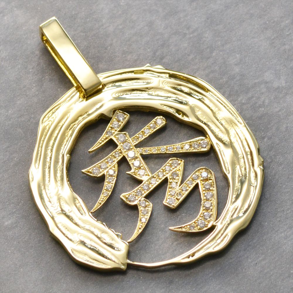 商品番号 CTC01597 使用貴金属 K18(18金イエローゴールド) 刻印有り 使用石 ダイヤモンド計0.34カラット(秀の場合) 総重量 約14g サイズ 縦:約46mm(バチカン含む) 横:約35mm 厚み(プレート部分):約1.5mm 厚み(バチカン部分):約5.0mm バチカン内径 縦幅幅:約10.0mm 厚み:約3.0mm 付属品 鑑別書 ジュエリーケース 備考 受注生産品(納期約2カ月) ※重量及びカラットは文字により上下致します。 ※バチカン内径拡大(有料)をご希望の場合はお問い合わせください。 ※ご希望いただく大きさによっては拡大出来ない場合や形が異なって仕上がる場合がございます。 18金を使ったオーダーメイドネームペンダントトップです。一筆書きの円の中に漢字を収めた男らしいデザインは喜平に通して楽しみたい逸品。お客様のお好きな漢字を1文字お選びいただけます。(数字、アルファベット、ひらがな、カタカナも可能)ダイヤモンドの有無もご選択可能。バチカンの内径のご指定も承ります。原型から作成致しますので納期約2カ月頂戴致します。 職人が造る本格メンズジュエリー コマから造り組み上げる当店オリジナル極上喜平 その他メンズネックレスはこちらペンダントトップ メンズ K18 18金 オーダーメイド ネームプレート メンズペンダントトップ ゴールド 地金 名前 オーダーメイド 日本製 刻印入り 人気メンズジュエリー 人気レディースジュエリー 新作ジュエリー 喜平一覧 メンズペンダントトップ一覧を見る 人気メンズペンダントトップ特集を見る