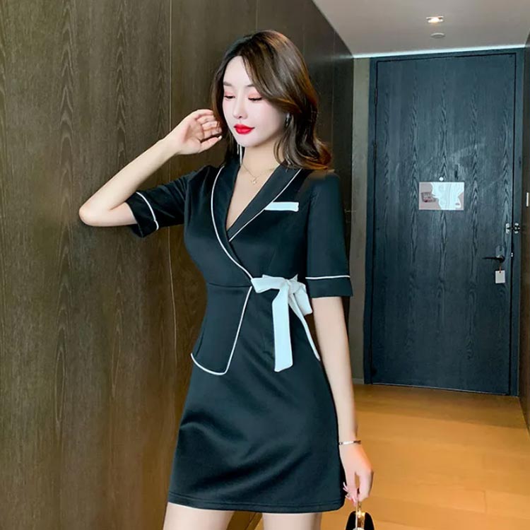 首元や袖口にサテンテープを施したシンプルなデザインのワンピース。素材はやわらかな肌ざわりと、伸縮性の高さを合わせ持つ動きやすく、着心地も抜群多くのリラクゼーションサロンやホテル、飲食店などで、ユニフォームとして導入されています! サイズ S M L XL 2XL 3XL サイズについての説明 Sバスト80着丈78尻周り82おすすめ体重45-50kg Mバスト84着丈78尻周り86おすすめ体重48-55kg Lバスト88着丈78尻周り90おすすめ体重53-60kg XLバスト92着丈78尻周り94おすすめ体重58-65kg 2XLバスト96着丈78尻周り98おすすめ体重63-68kg 3XLバスト100着丈78尻周り102おすすめ体重68-70kg ※サイズは平置き実寸になります。サイズ表の実寸法は商品によって1-3cm程度の誤差がある場合がございます。 素材 ポリエステル 色 ブラック ベージュ 備考 ●サイズ詳細等の測り方はスタッフ間で統一、徹底はしておりますが、実寸は商品によって若干の誤差(1cm〜3cm )がある場合がございますので、予めご了承ください。 ●商品の色は、撮影時の光や、お客様のモニターの色具合などにより、実際の商品と異なる場合がございます。あらかじめ、ご了承ください。 ●製品によっては、生地の特性上、洗濯時に縮む場合がございますので洗濯時はご注意下さいませ。 ▼色味の強い製品によっては他の衣類などに色移りする場合もございますので、速やかに(脱水、乾燥等)するようにお願いいたします。 ▼生地によっては摩擦や汗、雨などで濡れた時は、他の製品に移染する恐れがございますので、着用の際はご注意下さい。 ▼生地の特性上、やや匂いが強く感じられるものもございます。数日のご使用や陰干しなどで気になる匂いはほとんど感じられなくなります。