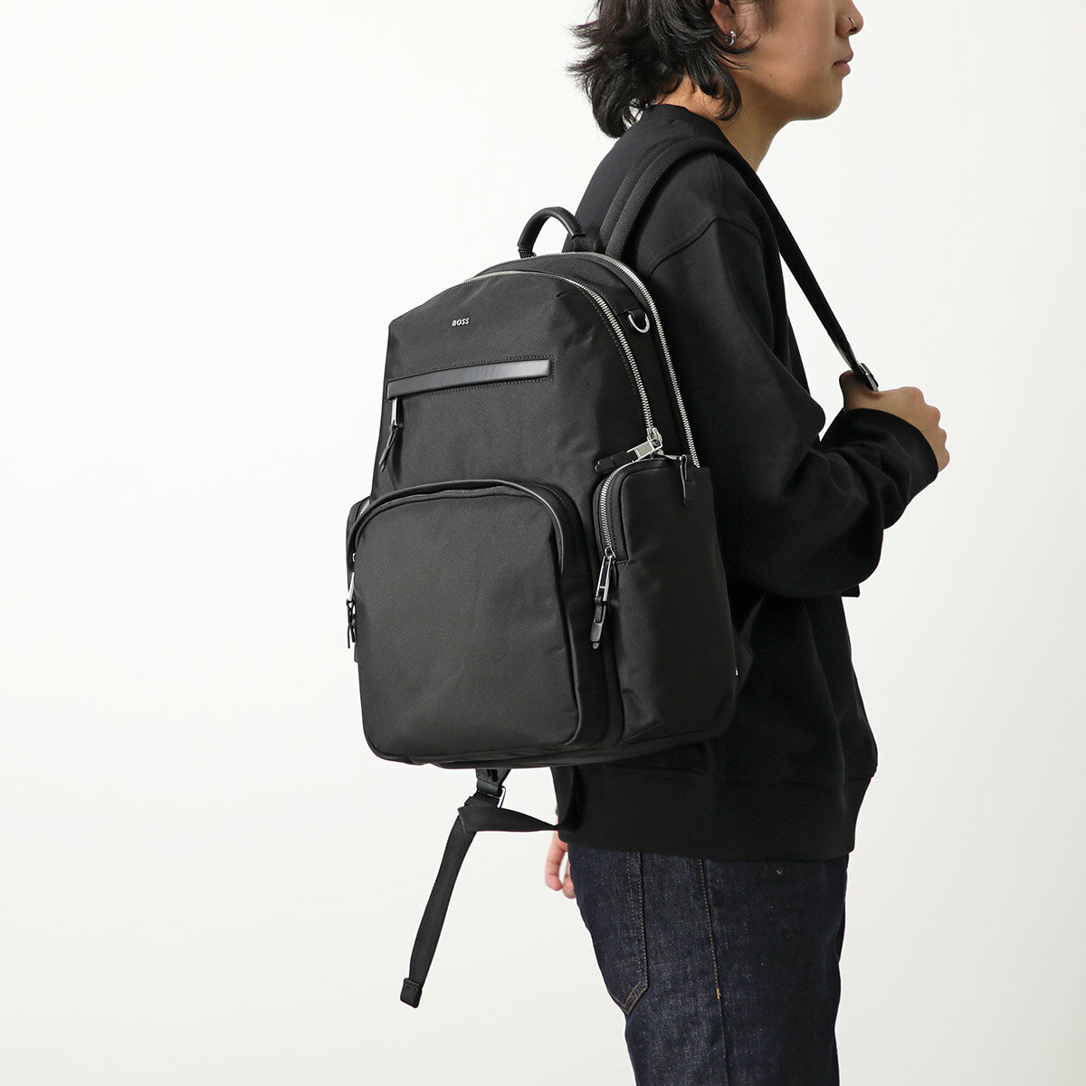 商品説明 ・再生ポリエステル素材にスムースレザートリム ・フロントにメタルロゴ ・内側メインコパーメントにファスナーポケット×1、オープンポケット×2 ・外側フロントと両サイドにファスナーポケット ・背面にパッド入りファスナーポケットとオープンポケット ・A4サイズも収納可能 ・サイドにDリング ・メッシュ仕様の背面キャリーバー通し付き アイテム メンズアイテム≫バッグ≫リュック・デイパック ブランド HUGO BOSS(ヒューゴボス) 1923年にドイツ・メッツィンゲンにて創立されたラグジュアリーブランド。 主にメインのコレクションラインである「BOSS(ボス)」を筆頭にカジュアル、スポーツラインを展開。 型番 50536485 サイズ(cm) 縦 43.5 横 29 マチ 13 重量 1.3 kg ※商品の計測はcm単位です。商品によって個体差や計測の方法により2~3cmの誤差が出る場合がございます。 ⇒ サイズガイドはこちら カラー 001/ブラック 素材 本体:ポリエステル(再生素材)100% ライニング:ポリエステル100%⇒ 取り扱いに関するご注意 付属品 付属品なし⇒ 付属品についてはこちら 備考 お問い合わせ品番 370221153 ⇒ ギフトラッピングのご注文はこちらから ⇒ 返品・交換についてはこちら