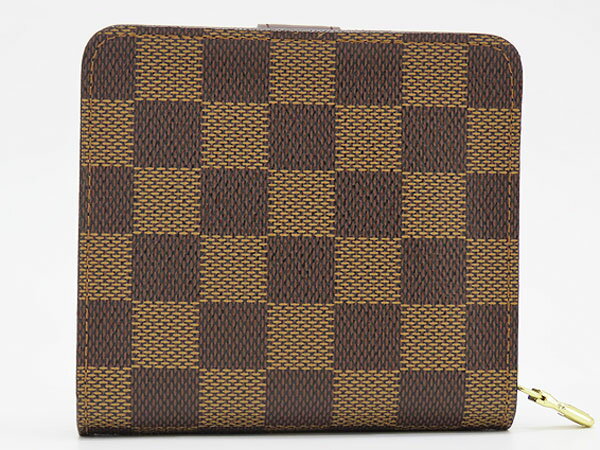 ● ブランドルイヴィトン LOUIS VUITTON ● 商品名ダミエ コンパクトジップ ファスナー付き 二つ折り財布 ● サイズW:11cm H:10cm D:2.5cm ● 仕様札入れ×1 ファスナー付小銭入れ×1 カードポケット×3 ポケット×2 ● カラーダークブラウン ● 型番N61668 ● 製造刻印CA0024 ● 製造国スペイン ● 付属品箱 保存袋(薄汚れあり) ● 商品ランク 外観: SA 内観: A ● 商品状態外側に経年による反り、ホックボタンの受け側周辺や内側レザーにホックによる押し痕、カードポケットにカード痕や薄スレがございますが、使用感少なくとても綺麗なお品物になります。