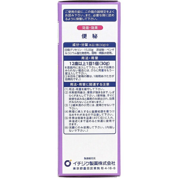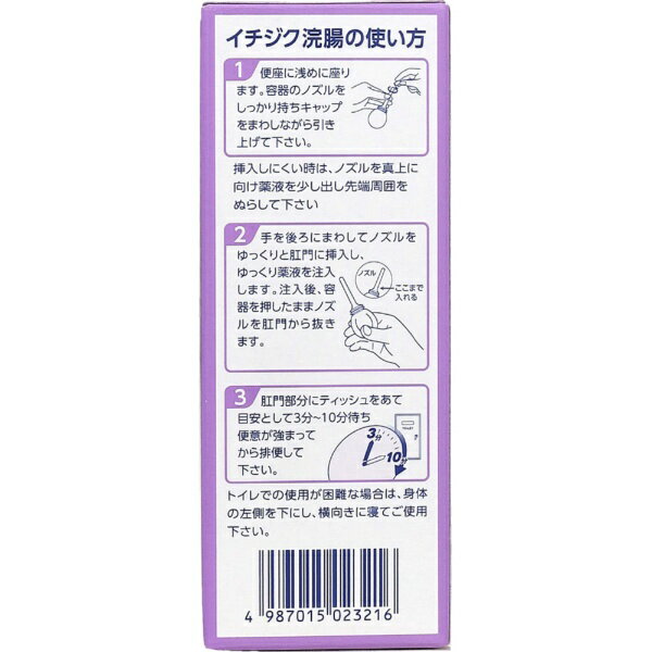 ●便秘に早く効きます●使用しやすいロングノズルで液が奥まで届く●首が動いて曲がるソフト容器です 文責:川田貴志(管理薬剤師)使用期限:半年以上の商品を出荷します※医薬品には副作用リスクがあり、安全に医薬品を服用して頂く為、お求め頂ける数量を制限しております※増量キャンペーンやパッケージリニューアル等で掲載画像とは異なる場合があります※開封後の返品や商品交換はお受けできません----------------------------------------------------------------------------広告文責:株式会社ビックカメラ楽天 050-3146-7081メーカー:イチジク製薬|ICHIJIKU PHARMACEUTICAL商品区分:第2類医薬品----------------------------------------------------------------------------