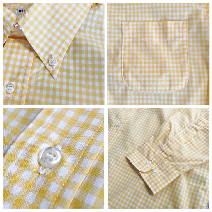 【ワーカーズ】 モディファイド ボタンダウン トーマスメイソン WORKERS Modified BD Thomas Mason ボタンダウン シャツ ギンガム チェック ポプリン 2023秋冬、カタログ未掲載のスペシャル品番、トーマスメイソンの生地を使用したボタンダウンシャツ。 WORKERS 定番、Modified Fit のボタンダウン。身頃、フィット感はあるがピタピタでは無い。肩幅も落ちすぎず、入りすぎず。着丈は裾を出しても・入れても着られる75センチ程がマスターサイズ。袖ぐりのカマ(縦方向の寸法)自体はある程度余裕があり、窮屈さは無い。でも肘から先をわずかに細くしてすっきりと。その分、袖がまくりづらくなるので、袖口の開きは深めにとる・・・といったように、機能性を考えて型紙をひいています。「デザイン的なシャツ」では無く、「設計的なシャツ」とでもいうのでしょうか。型紙を自分でひくからこそ、こういう作り方の品番もあるのです。2023秋冬のスペシャル品番、トーマスメイソンのポプリン生地を使用したイエローギンガムチェックのボタンダウンシャツです。 5