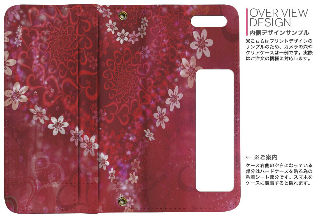 商品特徴・シームレスな両面フルデザイン、開いた時も内側のデザインが楽しめます・素材には高品質の人工革を貼った、しっかり厚みのあるタイプ・内側にはスマホを装着するケースが付属・機種専用のカメラホール仕様でケースを装着したままの撮影が可能・ワンセグや動画の視聴に便利な横置きスタンド機能・ICカードなどを2枚まで収納できるカードスロット&ポケット付き・マグネットフリップで開け閉めカンタン注意事項商品画像はサンプルイメージですので、ご覧の環境によっては多少色味に違いを感じる場合がございます。イメージと違った、モニターと色味が異なるという理由での交換や返金はご対応出来かねます。カバーのみの販売で本体は付属しません。ケース装着のまま充電可能ですが、卓上ホルダでの充電は仕様上対象外となります。また、充電ケーブルの差し込み口の位置によっては外側カバーを開く必要があります。こちらは無地のレザーにデザインをプリントした商品で、デコなどの加工はございません。凹凸や光沢があるように見えたり布地や金属を素材にしたように見える商品もありますが、デザインの図版によるものです。撮影時にカバーが映り込む恐れがあるため、カメラ用の穴は若干大きめに開けています。カメラ穴の位置にわずかなズレが生じる場合がございます。また印刷時に微妙な画像のズレが生じる場合がございます。製作後、すぐに梱包・発送していますため、インク独特の匂いが残る場合があります。こちらは自然と薄まりますが、気になる方は風通しの良い場所で数日保管してください。ご注文後に1点1点制作する受注生産品のため、不良品以外のご返品や交換は固くお断り致します。機種の選択間違いも保証対象外となりますため、ご注文の際は必ず機種をご確認下さい。発送について完全受注生産のハンドメイド商品となりますので、既製品と比べて発送までお時間を頂いています。 基本的に決済確認後、通常で3営業日程度、最大で10営業日程度での発送となります。繁忙期や休業日明けの場合はさらに時間がかかる場合があります。 その際には別途メールにてご連絡致します。メール便の場合、発送日から到着までに2?4日ほどかかる場合が多く、紛失などの保障もご対応できかねます。あらかじめご了承下さい。