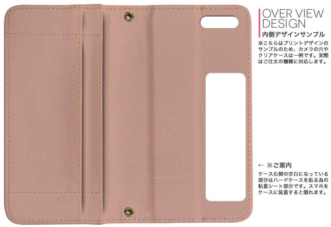 商品特徴・シームレスな両面フルデザイン、開いた時も内側のデザインが楽しめます・素材には高品質の人工革を貼った、しっかり厚みのあるタイプ・内側にはスマホを装着するケースが付属・機種専用のカメラホール仕様でケースを装着したままの撮影が可能・ワンセグや動画の視聴に便利な横置きスタンド機能・ICカードなどを2枚まで収納できるカードスロット&ポケット付き・マグネットフリップで開け閉めカンタン注意事項商品画像はサンプルイメージですので、ご覧の環境によっては多少色味に違いを感じる場合がございます。イメージと違った、モニターと色味が異なるという理由での交換や返金はご対応出来かねます。カバーのみの販売で本体は付属しません。ケース装着のまま充電可能ですが、卓上ホルダでの充電は仕様上対象外となります。また、充電ケーブルの差し込み口の位置によっては外側カバーを開く必要があります。こちらは無地のレザーにデザインをプリントした商品で、デコなどの加工はございません。凹凸や光沢があるように見えたり布地や金属を素材にしたように見える商品もありますが、デザインの図版によるものです。撮影時にカバーが映り込む恐れがあるため、カメラ用の穴は若干大きめに開けています。カメラ穴の位置にわずかなズレが生じる場合がございます。また印刷時に微妙な画像のズレが生じる場合がございます。製作後、すぐに梱包・発送していますため、インク独特の匂いが残る場合があります。こちらは自然と薄まりますが、気になる方は風通しの良い場所で数日保管してください。ご注文後に1点1点制作する受注生産品のため、不良品以外のご返品や交換は固くお断り致します。機種の選択間違いも保証対象外となりますため、ご注文の際は必ず機種をご確認下さい。発送について完全受注生産のハンドメイド商品となりますので、既製品と比べて発送までお時間を頂いています。 基本的に決済確認後、通常で3営業日程度、最大で10営業日程度での発送となります。繁忙期や休業日明けの場合はさらに時間がかかる場合があります。 その際には別途メールにてご連絡致します。メール便の場合、発送日から到着までに2?4日ほどかかる場合が多く、紛失などの保障もご対応できかねます。あらかじめご了承下さい。