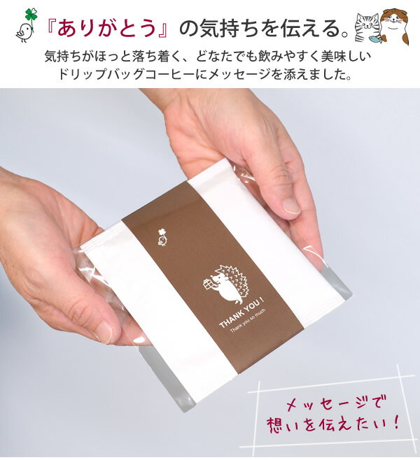 商品説明 こちらは2パックセットでの販売になります。 ほっこり可愛いキャラクターの当店オリジナルラベル付きドリップバッグコーヒーのプチギフト。 ちょっとしたプレゼントにぴったり! 幅広いシーンでご利用していただけます。 品名 レギュラーコーヒー(粉) 原材料名 コーヒー豆(生豆生産国名:ブラジル、コロンビア、他) 内容量 8g 保存方法 高温多湿を避け涼しいところで保存してください。開封後はお早めにお召し上がりください。 ご注意 ※撮影用の備品は商品に含まれません。 ※できるだけ実物に近くなるよう努力していますが、モニターの解像度・撮影環境・ブラウザ表示環境などの事情により、実物と写真の色具合が若干異なる場合がございます。のしタイプはこちら! メッセージタイプはこちら! クリスマス・お正月タイプはこちら!