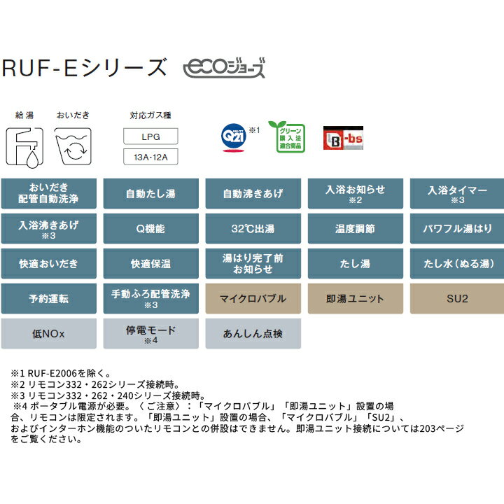 ●寸法(mm):高さ600×幅470×奥行270 ●質量(kg):26.0 ●ガス消費量: 給湯:44.2kW(38000kcal/h) おいだき:11.0kW(9500kcal/h) 同時:54.0kW(46400kcal/h) ●接続口径: 13A・12A:20A(R3/4) ふろ:15A(G1/2B) 給湯・給水:20A(R3/4) ●本体色:シャイニーシルバー ◆商品型番 ・リンナイ ・RUF-E2406AA(A) 商品画像はイメージです。品番でのご注文となりますので、仕様やお色味などは事前にメーカーへご確認下さい。◆メーカー問合せ先: リンナイ【0120-054-321】