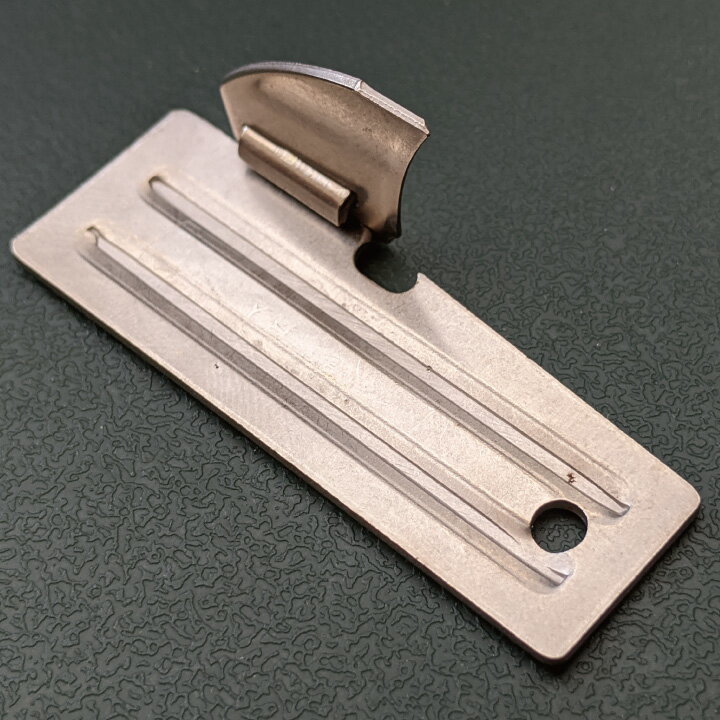 米国のレーション缶詰(戦闘糧食)に付属する缶切りです。小型で携帯しやすく、必要な時に爪を立てて使用します。 大きさは約51mm×21mmとなります。(ドッグタグは、50mm×28mmです。)