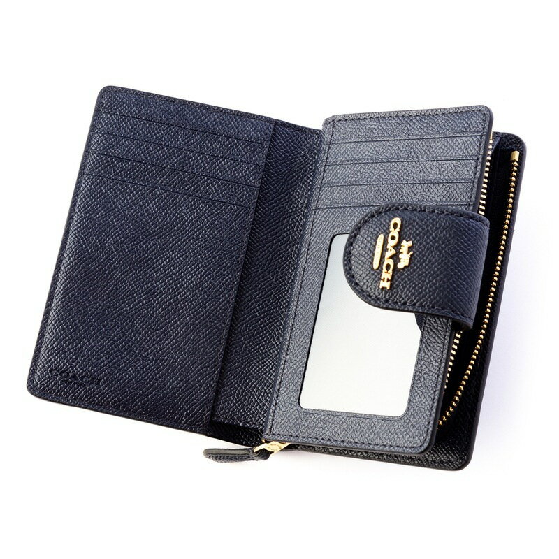 ■ブランド名:COACH OUTLET ■オリジナル品番:6390 IMMID ■カラー:ダークネイビー ■サイズ:(約)縦9cm 横13cm マチ3cm ■重量:(約)110g ■仕様 開閉:ホック 内側:札入れ×1、オープンポケット×2、カードポケット×7、パスケース×1 外側:ファスナー付き小銭入れ×1 ■素材:レザー ■付属品:無し ■製造国:ベトナム、その他