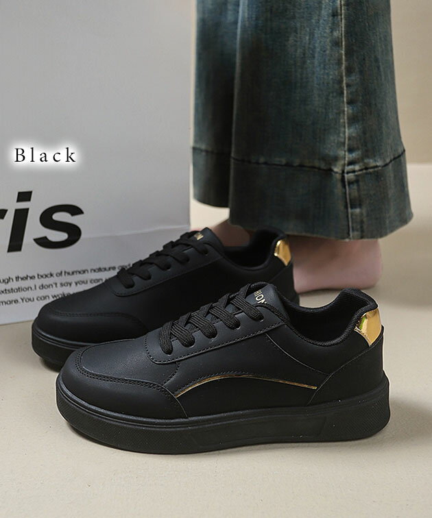 ⇒ 買い物ガイドはこちら■商品説明 存在感のある厚底設計で、今年らしいボリュームフォルムに仕上げた一足。 コートシューズをベースにしたきれい感のあるデザインが使いやすく、カジュアルからアーバンコーデにも取り入れやすい一足に仕上げました。 無地ベースのアッパーには、ゴールドの配色でリッチな表情をプラス。 シンプルながらも目を引くカラーのアクセントで、洗練されたルックスが実現。 どんなコーディネートにも合わせやすく、お手持ちに一足あると重宝すること間違いなしのアイテムです。 ■サイズ(日本サイズ) 【36】23.0cm 【37】23.5cm 【38】24.0cm 【39】24.5cm 【40】25.0cm ・重量(片足)265g ■素材 甲材: 合成皮革PU / 底材: 合成ゴム ■モデル情報 - ■原産国 MADE IN CHINA ■注意事項 ・撮影画像と実物の色合いが多少異なって見える場合がございます。 ・サイズは平置きでの採寸となりますので、測定方法によって多少の誤差が生じる場合がございます。 ・入荷・生産時期により、色味、サイズ、素材などが多少異なる場合がございます。 ・本製品は生産過程におきまして、生地を織る際の糸の継ぎ目や多少のほつれが生じることがあります。 ・お手頃な価格でご提供しているため、簡易包装となっており、保管・梱包時にシワが生じる場合がございます。 ・靴商品については、商品箱が破損している場合がございます。 上記内容について、あらかじめご了承くださいますようお願い申し上げます。