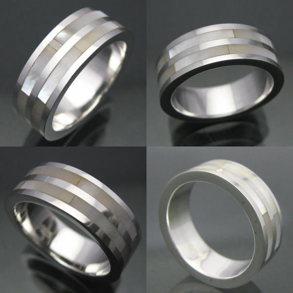 シンプルな平打ちタイプのシルバー925製リングに、磨きこまれた貝殻でラインをデザインしました。 二本のラインには真珠のような輝きを放つ貝殻がセッティングされています。奥行きのある多彩な輝きがとても美しいですよ。 平面も角もピシッと正確に仕上げられています。 サイズによってリング全体のバランスなどが変わります。(商品画像は17号の物です) もちろん新品未使用です。 原型製作、鋳造、仕上げまでのすべての工程を自社工場にて行うことによって、最高のクオリティの商品を低価格でご提供することが可能になりました! 当社の工場で製造された商品は、数十年のキャリアを持つジュエリー職人が技術指導し、1から育て上げた熟練の職人集団による手作業で作り出されています。品質には絶対の自信がございます。 サイズ: 幅:7.4mm 厚み:2.3mm 重量:7.5g 材質:シルバー925 スターリングシルバー 貝 シルバー925 スターリングシルバーとは? 銀 92.5%と銅 7.5%を混ぜ合わせた合金です。 純銀より美しさ、強度を増すために銅を足した物です。 シルバーアクササリーや銀食器等、幅広く使われております。
