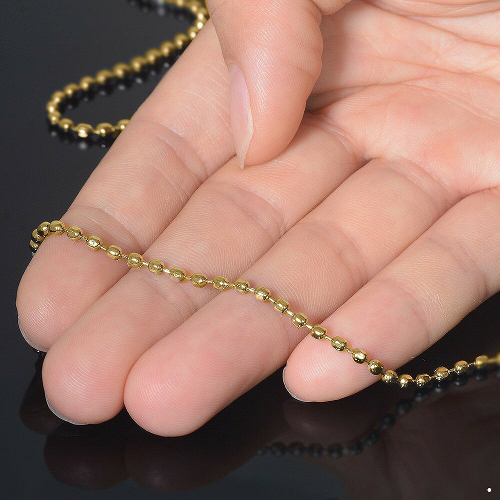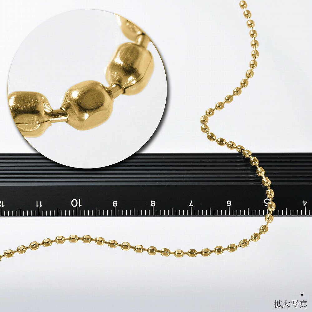 ボールチェーンのボールひとつひとつにカットを施したデザインのチェーンです。ボール状のコマが動きに合わせて転がるたびにカット面がキラキラと輝き上品な印象を与えてくれます。※当店の金色ステンレスチェーンは、イオンプレーティングを施しています。イオンプレーティング(IPメッキ)とは、金属イオンと不活性ガスを反応させた化合物を製品に蒸着させるコーティングで、ガスの比率でカラーを調整します。従来の鍍金加工に比べて表面耐久性、密着性、工程の安全性が飛躍的に向上しております。■長さ違いもございます。15/16/17/18/19/20/21/22(cm)商品情報チェーン部分のサイズ約 幅2.40mm×厚さ2.40mm×線径-mm長さ(留め具含む)約 22cm素材(留め具含む)金属アレルギーに強い医療用サージカルステンレス(316L)備考・プレゼント用ラッピング可(ご注文時の画面でご指定下さい)※上記表の数値は参考値です、実際にはロットにより多少前後します。サージカルステンレスについてサージカルステンレスとは一般的なステンレスとは違う素材で、医療の現場で使用される特別なステンレスの総称です。金属アレルギーを起こす事が殆ど無く、傷や酸化による変色にも強いことから、最近ではメンズ・レディース問わず使用され始めた注目の新素材。特にアレルギーが起き易いお洒落な方、男性・女性問わず是非一度お試し下さい!ステンレス カットボール ブレスレット チェーンサージカルステンレスとは、金属アレルギーに強く医療用にも使用される体に優しい新素材ステンレス・スティールです。とても美しい光沢を持つ事からステンレス・スチールはアクセサリー素材として大変優れています。