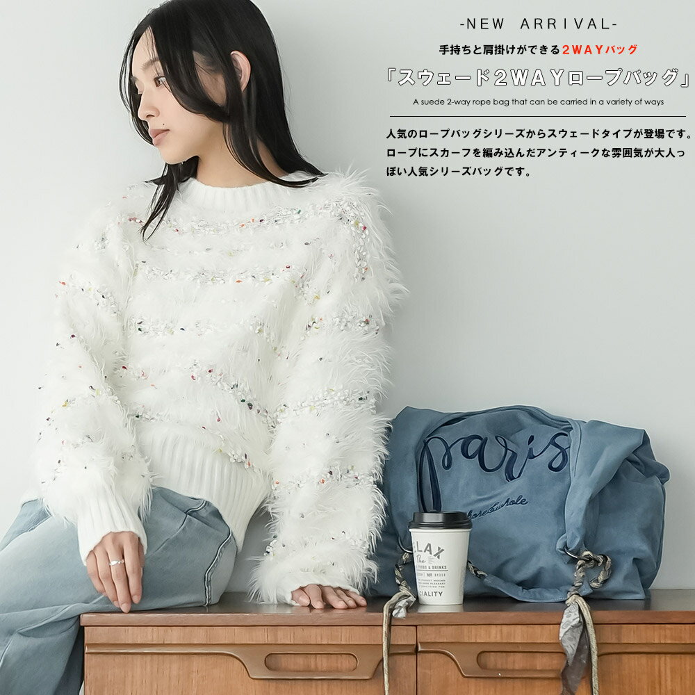 商品名:スウェード2WAYロープバッグ 品番:b62118 カラー:ブラウン、ブルー サイズ:F 実寸:持ち手(外) 81cm 持ち手(内) 46cm 底幅(ヨコ) 38.5cm 底幅(マチ) 7.5cm 高さ 40cm 素材:本体 ポリエステル100% 金具 合金 紐 ポリエステル100% 透け感:なし 伸縮性:なし 裏地:なし 備考:肩ひも取り外し可能 内ポケットあり メール便(郵3)対応 ※実寸は平置きでメジャーによる採寸のため、多少の誤差が生じる場合がございます。 ※本製品は特性上、摩擦や汗・雨など水分の影響により色落ち・色移りする場合があります。 淡色の衣類やバッグなどとの組み合わせには十分ご注意ください。 ※沖縄・離島・一部地域への配送は、9,800円(税込)以上で送料無料となります。また、商品の発送元が、沖縄・離島・一部地域の場合は、送料無料の対象外となる場合がございます。商品名:スウェード2WAYロープバッグ 品番:b62118 カラー:ブラウン、ブルー サイズ:F 実寸:持ち手(外) 81cm 持ち手(内) 46cm 底幅(ヨコ) 38.5cm 底幅(マチ) 7.5cm 高さ 40cm 素材:本体 ポリエステル100% 金具 合金 紐 ポリエステル100% 透け感:なし 伸縮性:なし 裏地:なし 備考:肩ひも取り外し可能 内ポケットあり メール便(郵3)対応 ※実寸は平置きでメジャーによる採寸のため、多少の誤差が生じる場合がございます。 ※本製品は特性上、摩擦や汗・雨など水分の影響により色落ち・色移りする場合があります。 ※淡色の衣類やバッグなどとの組み合わせには十分ご注意ください。 ※沖縄・離島・一部地域への配送は、9,800円(税込)以上で送料無料となります。また、商品の発送元が、沖縄・離島・一部地域の場合は、送料無料の対象外となる場合がございます。