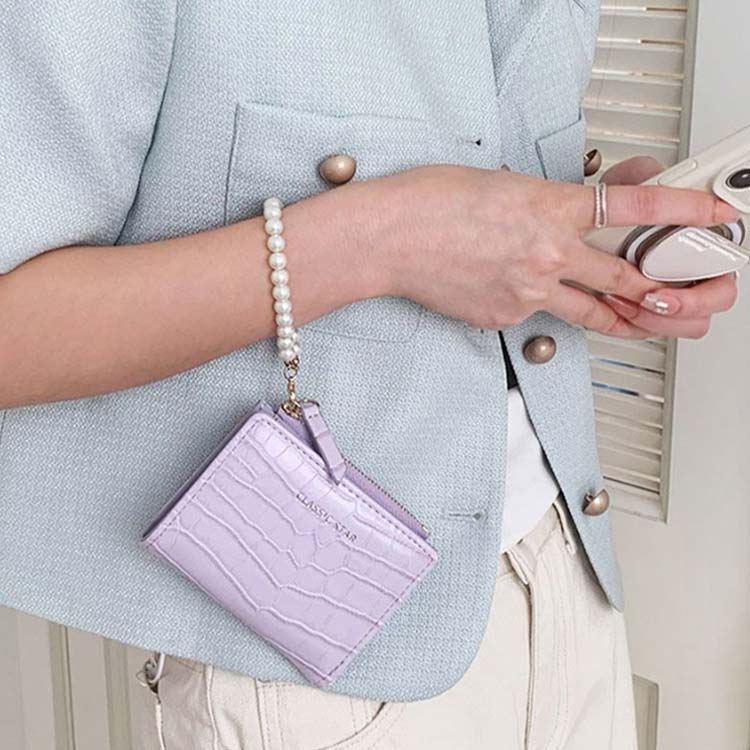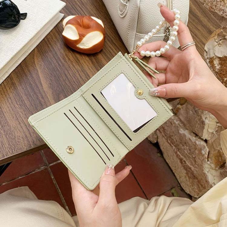 小銭・お札・カードが入るコンパクトな薄型二つ折り財布!スナップボタン式の二つ折り部分を開くと3か所ずつカードポケットを配置。深めの作りなのでお札も余裕を持って入れることが出来る設計です。個人情報を盗んで悪用するなどの犯罪から守るスキミング防止機能付き。機能性だけでなく持つ人の手に馴染むサイズと軽量さを綿密に設計。ポケットにすっぽり収まる。パールのストラップがかわいらしさを演出、デイリーにご愛用いただけます。 サイズ スキミング防止 サイズについての説明 11.5*9*2cm ※サイズ表の実寸法は商品によって1-3cm程度の誤差がある場合がございます。 素材 PUレザー 色 ホワイト ピンク グリーン ブラック パープル 備考 ●サイズ詳細等の測り方はスタッフ間で統一、徹底はしておりますが、実寸は商品によって若干の誤差(1cm~3cm )がある場合がございますので、予めご了承ください。 ●製造ロットにより、細部形状の違いや、同色でも色味に多少の誤差が生じます。 ●パッケージは改良のため予告なく仕様を変更する場合があります。 ▼商品の色は、撮影時の光や、お客様のモニターの色具合などにより、実際の商品と異なる場合がございます。あらかじめ、ご了承ください。 ▼生地の特性上、やや匂いが強く感じられるものもございます。数日のご使用や陰干しなどで気になる匂いはほとんど感じられなくなります。 ▼同じ商品でも生産時期により形やサイズ、カラーに多少の誤差が生じる場合もございます。 ▼他店舗でも在庫を共有して販売をしている為、受注後欠品となる場合もございます。予め、ご了承お願い申し上げます。 ▼出荷前に全て検品を行っておりますが、万が一商品に不具合があった場合は、お問い合わせフォームまたはメールよりご連絡頂けます様お願い申し上げます。速やかに対応致しますのでご安心ください。