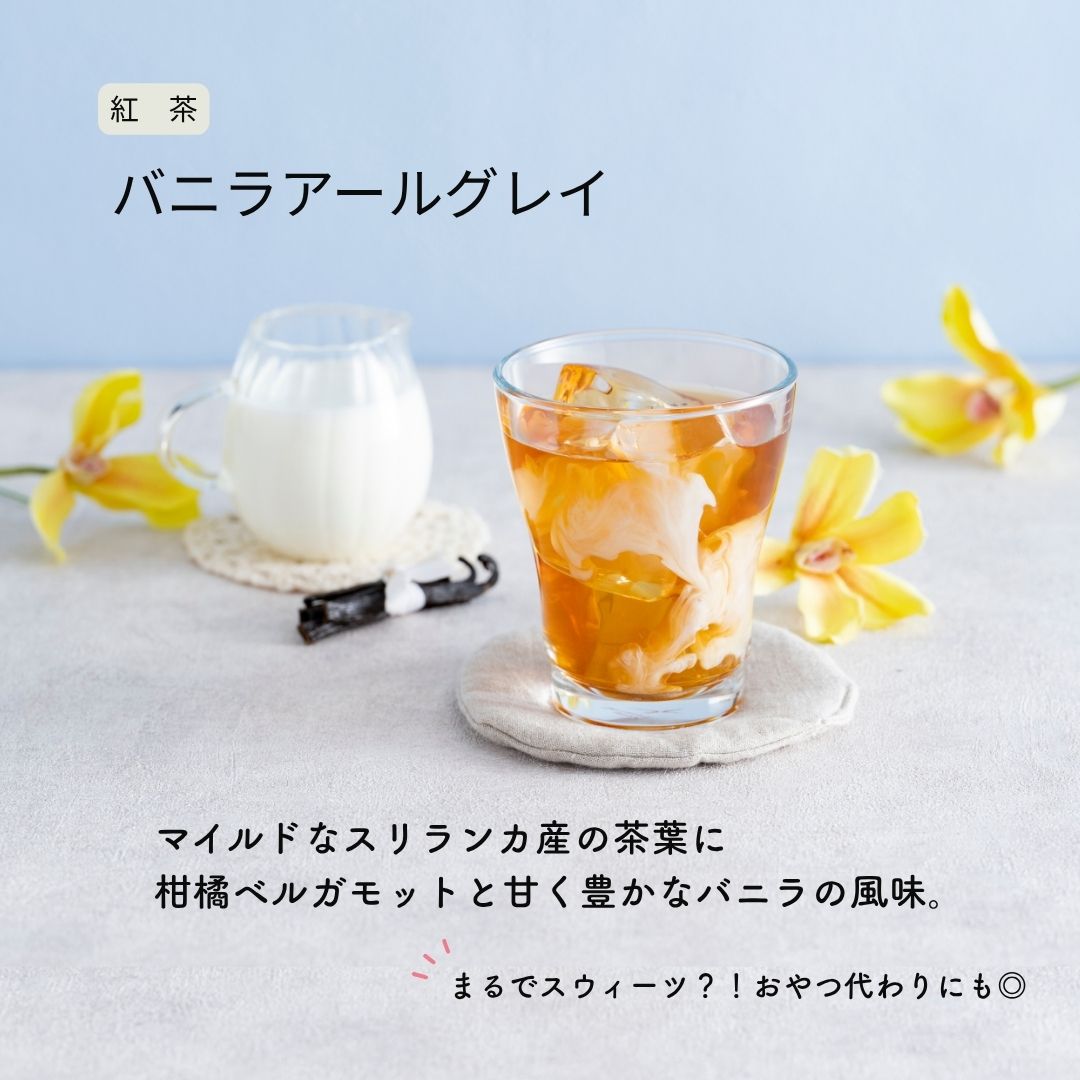 マイルドなスリランカ産の茶葉に、柑橘ベルガモットと甘く豊かなバニラの風味。 美味しい8種の作り方動画へ 内容量 2.5g×4 ティーバッグ サイズ 130mm×170mm 原材料 茶(スリランカ産)、香料(国産) アレルギー※1 - 栄養成分表示※2 熱量0kal たんぱく質0g 脂質0g 炭水化物0g 食塩相当量0g 賞味期限 製造日から6ヶ月 素材 植物由来の自然に還る生分解性フィルター、ジッパー付アルミ袋 保存方法 高温多湿、直射日光を避けて冷暗所で保管。開封後は賞味期限にかかわらずお早めにお召し上がりください。 ※1特定原材料等28品目について表示 ※2ティーバッグ1個からの抽出液150ml当たり推定値 ティーバック ティーパック 紅茶 アイスティー ミルクティー チャイ 水出し ボトル用 霧ト晴レ 霧と晴れ kiritohare ククーティーバッグ cuckoo teabag cuckooteabag ククーティー ククー