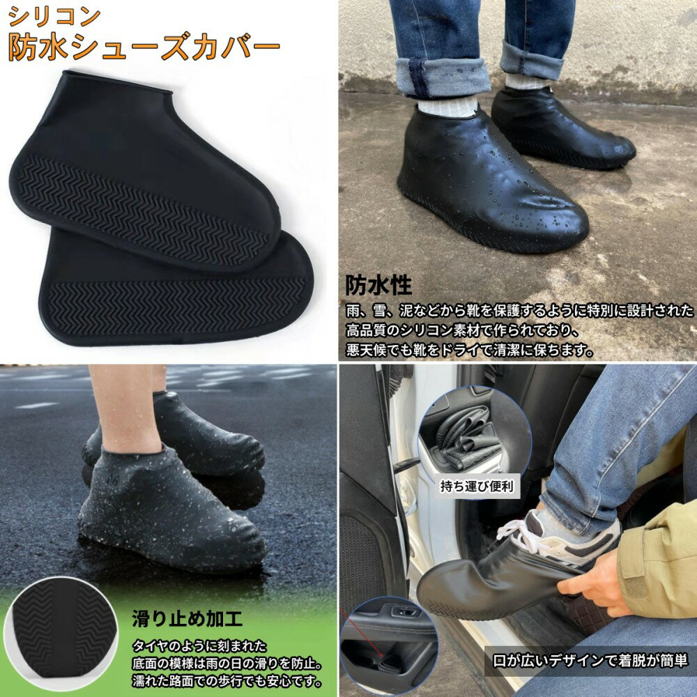 シリコンシューズカバー ブラック M 商品説明 【防水性】 雨、雪、泥などから靴を保護するように特別に設計された高品質のシリコン素材で作られており、悪天候でも靴をドライで清潔に保ちます。 【滑り止め加工】タイヤのように刻まれた底面の模様は雨の日の滑りを防止。濡れた路面での歩行でも安心です。【装着が簡単】伸縮性に優れた厚手のシリコン素材で作られており、口が広いデザインで着脱が簡単です。 【持ち運びが簡単】 防水レインシューズカバーは非常に柔らかく、簡単に折りたたんでポケットやバッグに収納できます。厚みのあるシリコン素材は耐摩耗性があり、再利用が可能です。 【幅広い用途】雨や泥除けなど普段使いのほか、ハイキング、サイクリング、アウトドア活動、キャンプ、釣り、ガーデニングに適しています。注意: 屋内のタイルや滑らかな床にはお勧めできません。滑りを防ぐために、部屋に入る前に靴のレインカバーを外す必要があります。 ※輸入品の為、取扱説明書は付属しておりません。 ※一部の仕様やデザインは予告なく変更になる場合がございます。 商品仕様 セット数 左右セット カラー ブラック サイズ M (適応:21.5-23.5cm) 平置きサイズ 24.5×14cm 素材 シリコン 保証について ■メーカー保証なし 記載の注意事項を除く初期不良品の場合のみ、商品到着から1週間以内のみ対応いたします。 ご到着後はお早めに商品状態をご確認ください。 注意事項 ●こちらの商品は、新品です。 ●モニター環境により、実際のカラーと異なって見える場合がございます。 ※この商品は送料無料です。商品の発送はゆうパケットでの発送となります。(代引支払はできません)※この商品は運送便の都合上、化粧箱を外して簡易包装で発送する場合がございます。プレゼント用にご購入される場合はご注意願います。<ゆうパケットに関する注意事項> ・ ゆうパケットに関しては基本的にポストに投函する為、 配達時に何らかのトラブル等が有り、万一、購入された商品が配送事故・紛失・破損等によりお手元に届かない場合でも弊社は責任を負いかねますので予めご了承下さい。(配送中の事故等は、免責とさせて頂きます。) ・ ゆうパケットに関しては代金引換払い及び時間指定サービスはご利用頂けません。