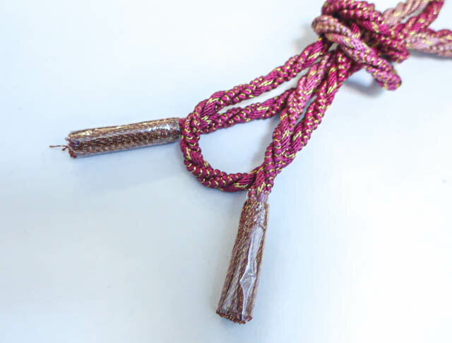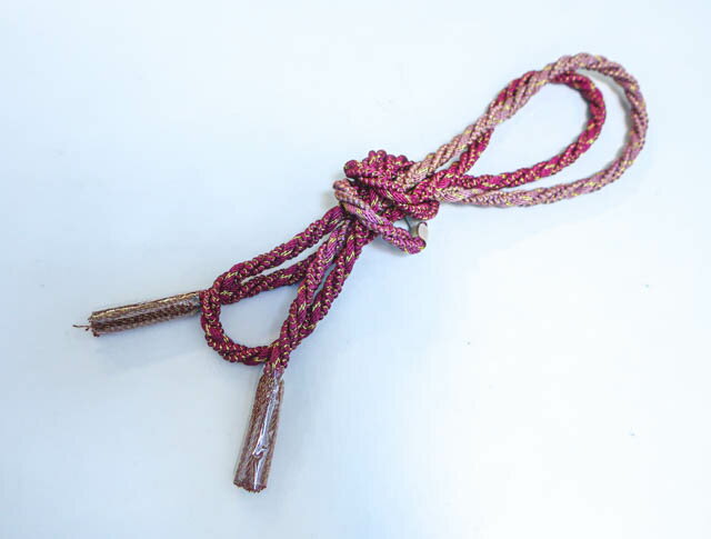 寸法 品質 素材:正絹 地色:えんじ色 ■サイズ 長さ:約170cm(房含む) ※リサイクル商品ですので、記載しております。 ※中古の商品だという点を御理解の上、ご購入くださいますようお願い申し上げます。 ※商品画像につきましては、パソコンの機種・モニターなどにより、現品と色の違いが出る場合があります。 ※詳細は商品画像にてご確認ください。 商品説明 リサイクル商品としては、良い状態のお品です。 撮影:北川 検品:藤好 画像:野阪 入力:森脇【アイディーネットのリサイクル・アンティーク着物 茶道具】【着物】 和装小物 帯締め 帯締 変わり組 撚り房 グラデーション 金糸 24W-1376