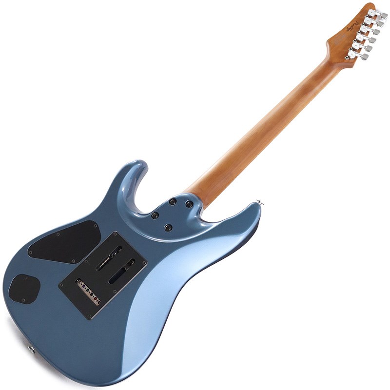 ■商品紹介Prestige AZ Series◆Gotoh T1802 tremolo bridge多くのプレイヤーやギター・ブランドから、トレモロ・ブリッジの決定版として定評のあるGOTOH 510ブリッジを、IbanezとGOTOH とのコラボレーションで新生させたブリッジです。音の立ち上がりが良さと、ソリッドかつファットなサウンドの両立を実現する、硬質な切削チタン製サドルと切削スチール製イナーシャ・ブロックを採用し、伸びのある高音域も特徴としています。弦間ピッチは10.5mmのナロー・スペーシング設計で、スキッピングやハイブリッド・ピッキングを多用するプレイヤーが要求する、弦間をまたいだピッキングのしやすさを追求しました。また、Ibanez Edgeトレモロのアームや、ウルトラ・ライト・トレモロ・アーム(カーボン製/UTA20/別売)も流用出来るアーム・ソケットを採用。従来のアームの様に回し入れることなくスナップ・インでアームを装着することが可能です。アーム取り付け部のトルクキャップを回転させることで、簡単にトレモロ・アームのトルク調整ができます。加えて、スタッドに埋め込まれたイモネジでがっちりと固定することで、チューニングのスタビリティやレゾナンスに大きく貢献するスタッド・ロック機構をも標準装備しています。スムーズなアーミングやアームアップが可能な2点支持フローティングを採用しています。◆dyna-MIX 10 switching system w/Alter switchミニ・スイッチの切替えひとつで自由自在にハムバッカーとシングルコイル・モードを行き来することができ、多数のサウンド・バリエーションを確保しています。限られた機材で一人何役もこなさなければならない現代のギター・プレイヤー向きのスイッチング・システムです。○AlterスイッチHHモデル…リアルなシングルコイルサウンドを実現するPower Tapモードへの切り替えとなります。片方のコイルはタップさせ、もう片方のコイルの低音域を生かす特殊配線が施された、ただのタップでは得られないクリアな高音域と太くて輪郭のハッキリしたサウンドが特徴です。◆Seymour Duncan Hyperion Pickups数十種以上のピックアップを入手し、それら全ての周波数特性を測定。その中からAZに最適と考えられるピックアップの仕様と音像を割り出し、ピックアップ・ブランドとして長い歴史を持ちつつ、今も尚新たな取り組みを続けているピックアップ・ブランドの代名詞Seymour Duncan 社とのコラボレーションによって生まれたAZ専用ピックアップです。歪ませてもどこかに原音のクリーンさを残す様、出力を抑え気味にして、ピッキングの追従性と再現性にポイントをおいて設計しました。トレブルからベース、あるいは1弦から6弦までの鳴り方まで、あくまでもトータルのバランスを重要視し、エフェクトの乗りの良さも追求しました。マグネットは全てAlnico-5を採用しています。◆S-TECH WOOD Roasted Maple Fretboard触れ幅の大きなチョーキングをしても音詰まりせず、コードワークでも指と手にストレスを感じさせないことをポイントとして、ネックとのコンビネーションなど複数の課題を数種類の試作に落とし込み、試行錯誤を重ねて辿り着いた305mmRの指板です。◆AZ Oval C S-TECH WOOD Roasted Maple neck指板とネックにはエステック処理されたメイプル材を使用しています。エステック処理とは宮城県で開発された木材への窒素加熱処理技術で、ギター材としての採用は世界初です。エステックウッドは形状安定性、反りに対する耐久性、耐水性、温度変化に強いといった特徴を持っており、それらの特徴を以って日本国内で特許を取得しています。ネックの厚みは数多くの試作と検証を経た結果、20.5*22.5 (at 1F*12F)がベストであると結論付けました。また、フィニッシュには弾き込まれたギターのネックの様な質感のオイル・フィニッシュ仕上げを採用しています。◆An ergonomic body back contourコンテンポラリーなデザインを目指したオリジナル・ボディ形状です。薄く仕上げたボディ・コンターと大きめのエルボー・コンターは、プレイヤーとギターとの一体感を生み、演奏性向上にも大きく貢献します。またボディのくびれを深くすることで抱えた時やステージ上での取り回しが良く、高い演奏性を実現しています。ボディ表面と裏面とで角のRを変えており、座位/立位に関わらずギターを抱えた瞬間にフィット感が感じられるエルゴノミックな設計です。◆Gotoh Magnum Lock machine heads w/H.A.P.(Height Adjustable Post)チューニング・スタビリティに定評のあるGOTOH 製マグナムロック・マシンヘッドを採用しました。H.A.P (Height Adjustable Post)機構を搭載しており、ポスト高さを調節することが可能で、各弦毎に適切なテンションが得られます。◆Luminlay side dot inlay照明などでめまぐるしく変化する演奏環境に対応してくれる、高い視認性を誇る3.0mm径の蓄光材ドット・ポジションを採用しています。暗いステージの上でも自分の弾きたい音を見失うことはないでしょう。◆Super All Access Neck Jointボディ裏面から8mmの高低差で段彫りし、さ