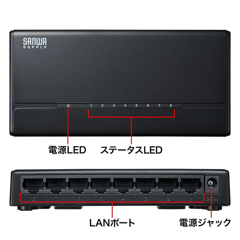 ■商品紹介★複数のDJ機器同士をLANケーブルで接続する際に使用するスイッチングハブ★マグネット付きでスチールデスクなどに固定できる10/100BASE-T対応の8ポートスイッチングハブ。【製品特長】◎100BASE-TXに対応した、8ポートスイッチングハブです。◎強力マグネットを搭載しスチール製デスクやキャビネットなどにしっかり固定できます。◎プラスチックケース採用のコンパクトデザインなので、設置場所を選びません。◎ファンレス仕様なので、動作音が静かです。◎ストレートケーブル、クロスケーブルを気にせず使える、AUTO-MDIX機能を搭載しています。◎接続する機器に合わせて10/100Mbps自動切替えが可能な、AUTO-Negotiation機能を搭載しています。◎リンクしていないポートを自動判別し電力供給を抑える省電力機能を搭載しています。全ポートのパソコンをシャットダウンした場合は最大59%/の省電力が可能です。◎電源はACアダプタ仕様でトラッキング火災防止用キャップを装着済みです。<ご注意>本製品は通電のみの場合と通信を行っている場合とでは発熱量が異なります。特に通信を大量に継続して行うと、本体は過熱状態になる場合があります。風通りの少ない放熱の悪い環境での連続使用は、内部部品の劣化を招き、製品寿命を低下させる恐れがあります。ご使用になる場合には本体上部に何も乗せず、通風口は10cm以上空間をあけて設置してください。【主な仕様】ポート数:8ポート規格:IEEE802.3(10BASE-T Ethernet)、IEEE802.3u(100BASE-TX Fast Ethernet)、IEEE802.3x(Flow control for Full-Duplex)アクセス方式:CSMA/CDスイッチング方式:Store&Forward伝送方式:100Mbps/10Mbps(全二重、半二重)ポート構成:100BASE-TX/10BASE-T(RJ-45) AUTO-MDIX ×8ポート適合LANケーブル:UTPカテゴリ5以上(100BASE-TX)、UTPカテゴリ3以上(10BASE-T)バッファメモリ:56kbytes(各ポートに動的割当て)フローコントロール制御:対応スイッチングファブリック:1.0Gbps最大パケット転送能力:1.2Mppsフィルタリング速度:148800パケット/秒(100Mbps)、14880パケット/秒(10Mbps)MACアドレステーブル:1024AutoMDI/MDI-X:対応オートネゴシエーション:対応(100/10Mbps)VCCI規格:CLASS B認証取得サイズ:本体/約W137.9×D66×H25.5mm、壁掛け用ホール/約W19.9×D8×H3.4mm重量:約128gACアダプタケーブル長:約150cm(コネクタ部含まず)ファン仕様:静音ファンレス付属品:取扱説明書、ACアダプタ×1、壁掛けセット×1※店頭、または通信販売にて売却後、敏速な削除は心掛けておりますが、web上から削除をする際どうしてもタイムラグが発生してしまいます。万が一商品が売切れてしまう場合もございますので予めご了承ください。検索キーワード:イケベカテゴリ_DJ機器_DJアクセサリー_DJアクセサリー_SANWA SUPPLY_新品 SW_SANWA SUPPLY_新品 JAN:4969887753088 登録日:2024/12/05 DTMアクセサリ