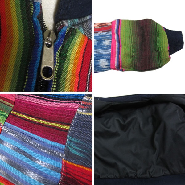 詳細 ●ブランド●- ●製造国●- ●表記サイズ●不明(目安:S) ●採寸● 肩幅 約64.0cm 袖 約49.0cm 着丈 約59.5cm 身幅 約58.5cm ●素材●COTTON 状態 細かなダマあります。 元々の作りですが、パッチワークの押さえステッチ所々に、糸抜け解れ、 首元フロントジッパーの付け位置に、左右でズレが見られます。 コメント アメリカから入荷。 日本にはない独特の、ネイティブな色彩が魅力のパッチワークブルゾン。
