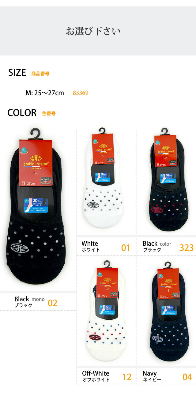 【商品インフォメーション】 素材 綿・ポリエステル・ポリウレタン・その他 サイズ M:25-27cm 特徴 ブランド-jodie stowe-スニーカーソックスドット柄Yカカト…ズレにくいかかと豊富な5色展開 中国製(日本企画) ご注意 ※画面上でご覧の商品は、お使いのPCの機器・照明等の環境、また室内での撮影により実際の色と若干異なる場合がございます。予めご了承くださいませ。 【関連キーワード】 白 / 黒 / 紺 / ショートソックス / スニーカーソックス / 紳士ソックス / メンズソックス / 色々 / 豊富 / カラー / 夏ソックス /スポーツソックス