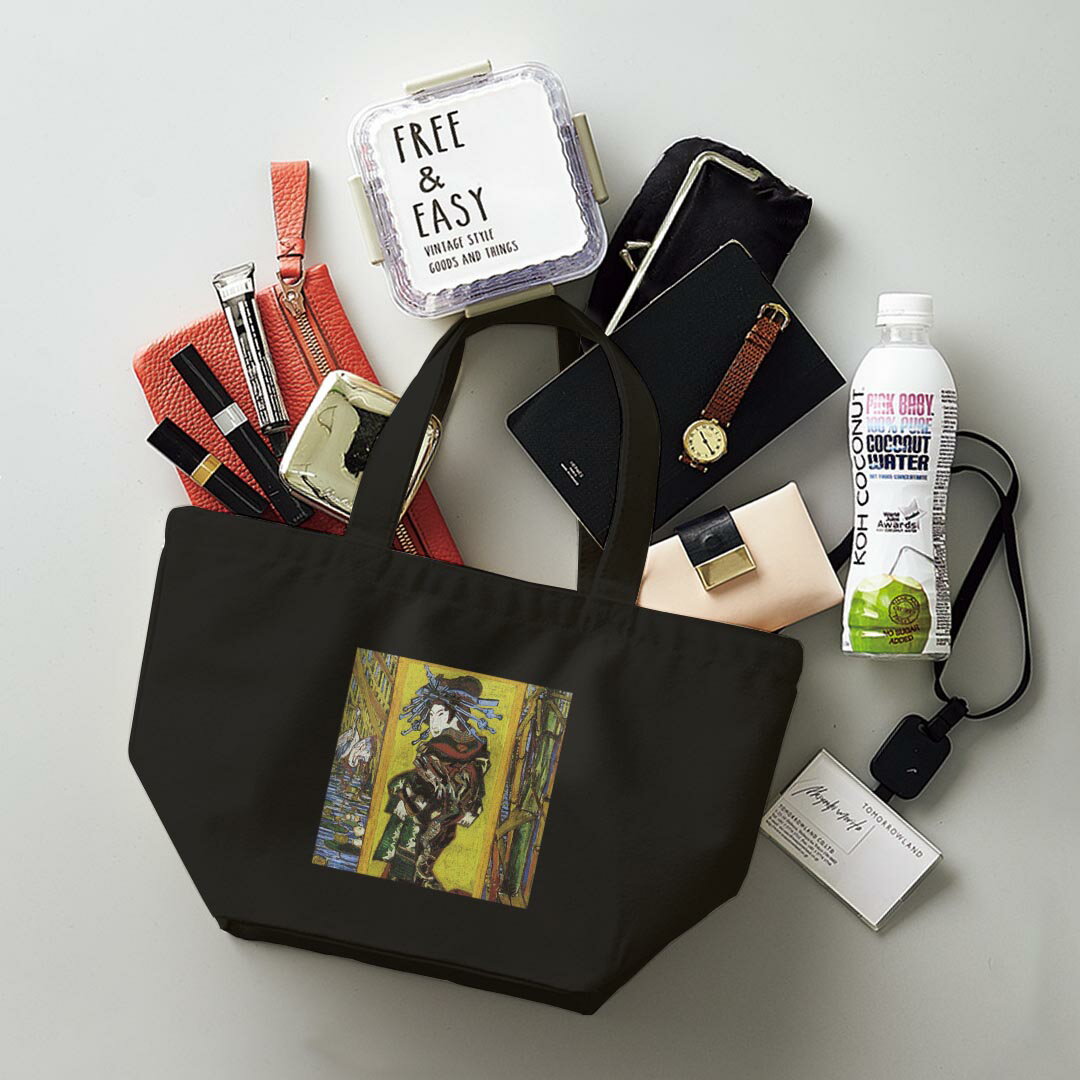 デザインランチバッグ キャンバス デイパック バッグ レディースバッグ トートバッグ ナチュラル 黒 black 003225 和風 和柄 人物