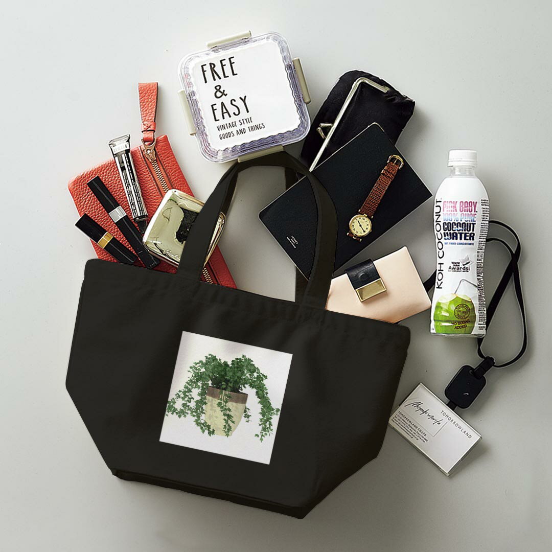 デザインランチバッグ キャンバス デイパック バッグ レディースバッグ トートバッグ ナチュラル 黒 black 009713 植物 シンプル 緑