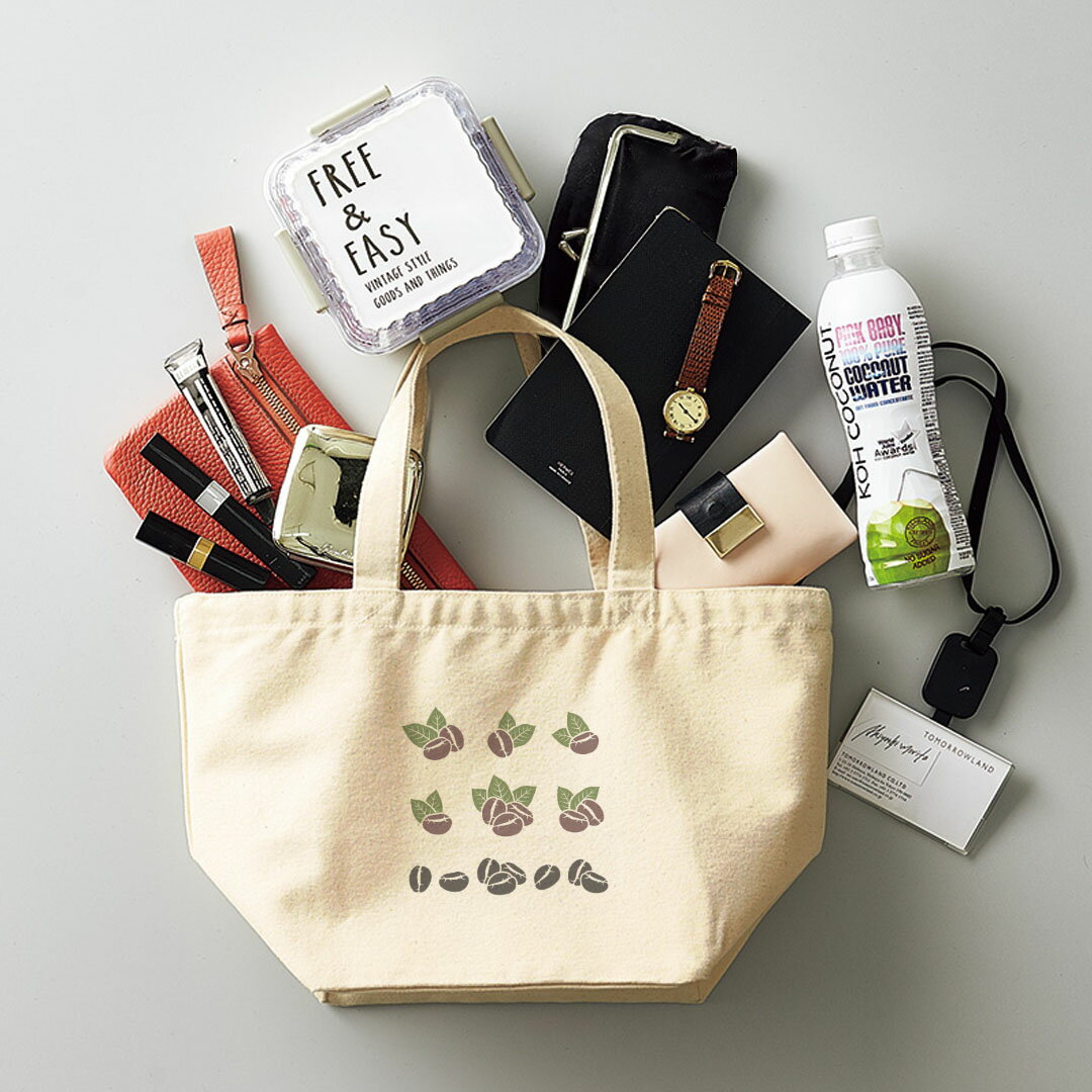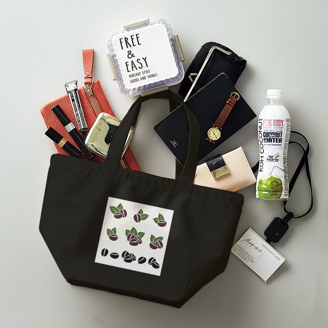 デザインランチバッグ キャンバス デイパック バッグ レディースバッグ トートバッグ ナチュラル 黒 black 013353 コーヒー 植物 豆