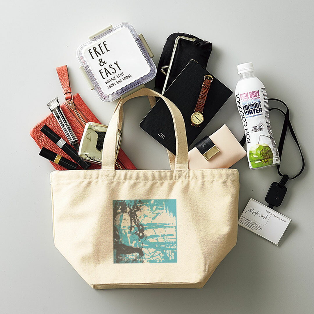 デザインランチバッグ キャンバス デイパック バッグ レディースバッグ トートバッグ ナチュラル 黒 black 010953 イラスト 黒 青