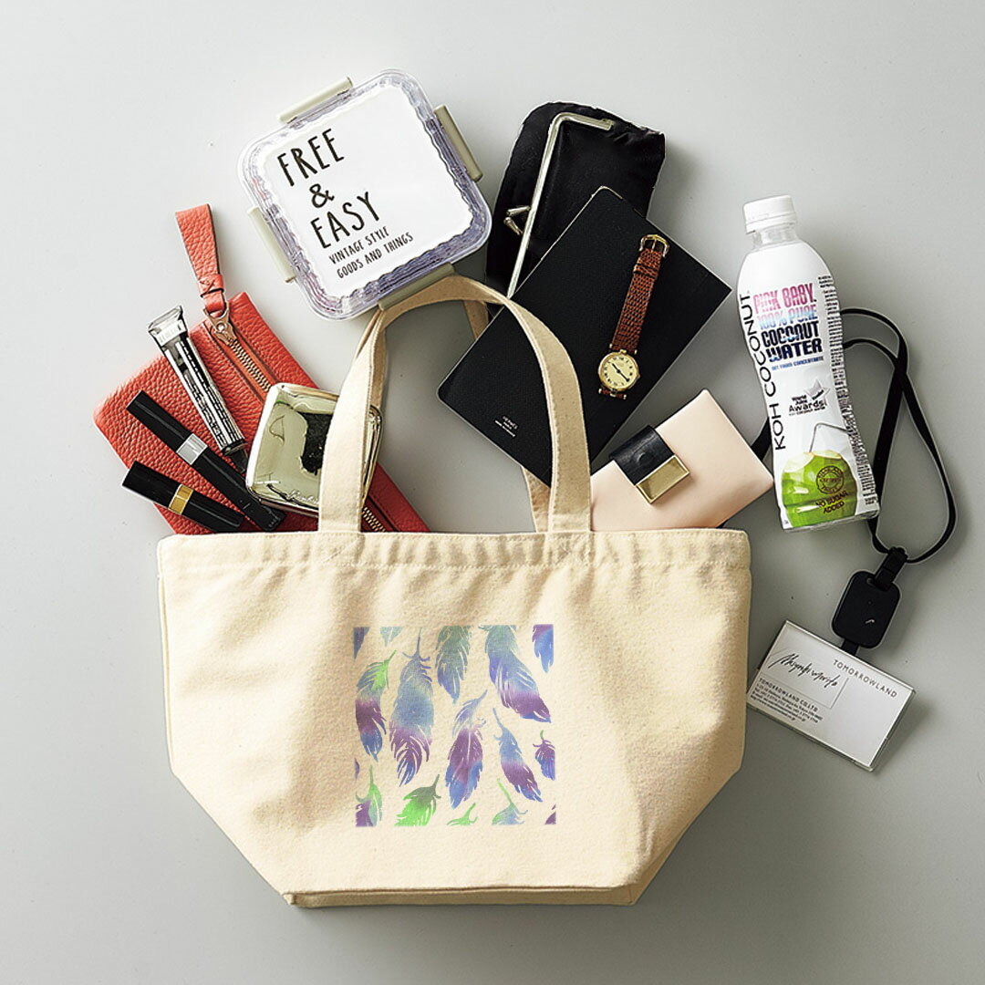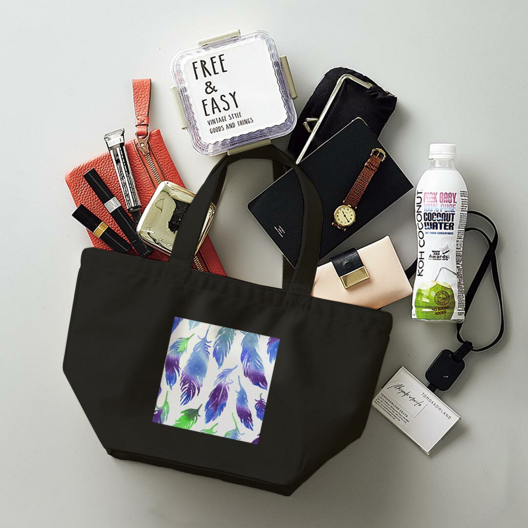 デザインランチバッグ キャンバス デイパック バッグ レディースバッグ トートバッグ ナチュラル 黒 black 011810 羽根 グラデーション 青