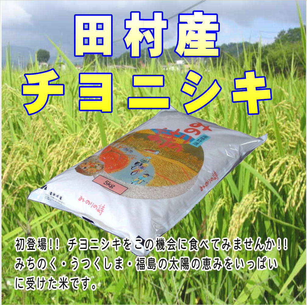 商品情報 初登場!! チヨニシキをこの機会に食べてみませんか!!みちのく・うつくしま・福島の太陽の恵みをいっぱいに受けた米です。土作りから徹底したこだわりを持つ農家が作っています。そのために乳牛を飼い、有機堆肥作りから始めます。完熟堆肥を中心に有機肥料を使用した、栄養たっぷりで安全な農法で作られています。土作りから乾燥、出荷まで手を抜かない米作りのプロと、弊社、食味鑑定士、お米マイスターが、自信を持って送り出します。 この商品は各サイズがあります 5kg | 10kg | 15kg | 20kg | 25kg | 30kg この商品には普通白米・無洗米・玄米の商品があります 普通白米 無洗米 玄米 玄米(無調整30kg) 食品表示 名称 精米 産地 福島県 品種 チヨニシキ 使 用 割 合 単一原料米 産年 商品袋表示面下部記載 内 容 量 商品袋表示面記載 保存方法 お米は生鮮食品です、商品到着後はお早めにお召し上がりください。 高温多湿を避け、冷暗所で保管してください。 ⇒保存方法の詳細はこちら 精米時期 商品袋表示面下部記載 販売者 (株)安藤米穀店 〒963-4312 福島県田村市船引町船引字反田15 TEL : 0247-82-0166