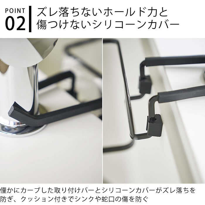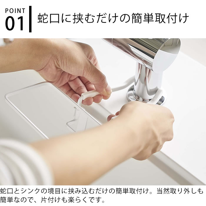 商品名 蛇口にかけるポリ袋ホルダー タワー 商品詳細 サイズ 約 W16×D19.5×H6cm ・ホルダーサイズ:約W16×D8cm 重量 約115g 素材 本体:スチール(ユニクロメッキ+粉体塗装) カバー:シリコーン 耐荷重 約500g 対応サイズ 蛇口:直径約3〜6cm以内 (※シンクの端から奥行約9.5cm以内に設置されているもの) シンク:深さ約4cm以上 ポリ袋:約W25cm以上のもの(周囲約50cm) 付属品 クッション2個 検索キーワード 蛇口にかけるポリ袋ホルダー タワー tower 三角コーナー 三角コーナー いらず ゴミ箱 生ごみ ゴミ 水切り ビニール袋 ネット キッチン 台所 便利 衛生的 シンク シンプル ホワイト ブラック 山崎実業 yamazaki 4825 4826蛇口にかけるポリ袋ホルダー タワー 蛇口に挟んで掛けるだけで簡易のごみ入れになるポリ袋ホルダー 吸盤でくっつけない、蛇口に挟み込むだけで取り付けられる ポリ袋ホルダー! 取り付け部分が蛇口をしっかり挟み込みホールドするので ずれ落ちる心配なし!蛇口に挟み込むバー部分に はシリコーンカバー付で 蛇口、シンクも傷つけることなく安心。 料理する時にササッと用意して、三角コーナーがわりの簡易のごみ入れができます。 シンプルに挟むだけだから、取り外しも簡単!生ごみをシンクにためずに終わったらすぐにゴミ箱に捨てられて、 後片付けも楽らく♪ 関連商品 蛇口にかけるスポンジホルダー タワー 蛇口にかけるスポンジホルダー タワー ダブル 蛇口にかけるスポンジ&ブラシホルダー タワー 蛇口にかけるポリ袋ホルダー タワー 蛇口にかけるドライホルダー タワー 暮らしが変わる!マグネット収納 一覧 シンプル&クールな暮らしに「tower」一覧 ナチュラルで優しい空間に「tosca」一覧