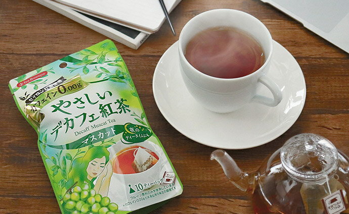 妊婦さんや小さいお子様、カフェインが苦手な人に おすすめ! 紅茶が飲みたい!でも妊娠中だから、授乳中だからカフェインが心配…でも、この紅茶ならカフェイン0.00gなので、赤ちゃんにもお母さんにも優しい紅茶です。 赤ちゃんが生まれた方や小さいお子様にも、安心して飲んでいただけるお茶です。 おやすみ前の リラックスタイムに カフェインが苦手な方にもうれしい、カフェイン0.00gにしたデカフェ紅茶シリーズ。おやすみ前のリラックスタイムにもおすすめのやさしい味わいです。つり下げ可能なフック穴付き袋入り。おいしさのヒミツは、三角型ティーバッグです。三角型のティーバッグは中がゆったりしているので、茶葉やハーブよく動き、おいしさと香りがしっかりと出て、本格的な味を手軽にお楽しみいただくことができます。 おいしい飲み方【ホット編】 1.あらかじめ温めたカップにティーバッグを1つ入れます。 2.熱湯約150ccを注ぎ入れ、ソーサーなどで蓋をして1~2分蒸らします。 3.ティーバッグを軽く振り、取り出してからお召し上がり下さい。 おいしい飲み方【アイス編】 1.ホットティーの要領で、熱湯の量は半分にして2倍の濃さのティーを作ります。 2.お好みで甘くしたい場合は、ここでグラニュー糖を加えて溶かしておくか、後でガムシロップを入れてください。 3.グラスに氷をたっぷり入れ、ティーを一気に注ぎ冷やします。 ※浸出時間はお好みで調整してください。 ※ティーバックは静かに取り出してからお召し上がりください。 やさしいデカフェ紅茶 マスカット 1.2g×10個入 カフェイン0.00g 50600 1点 日本緑茶センター 「デカフェ」とはカフェインを含んだ茶葉から、できる限りカフェインを取り除いたものです。 商品サイズ 50×110×180mm 賞味期限 2年 原材料 紅茶/香料 原産国 スリランカ