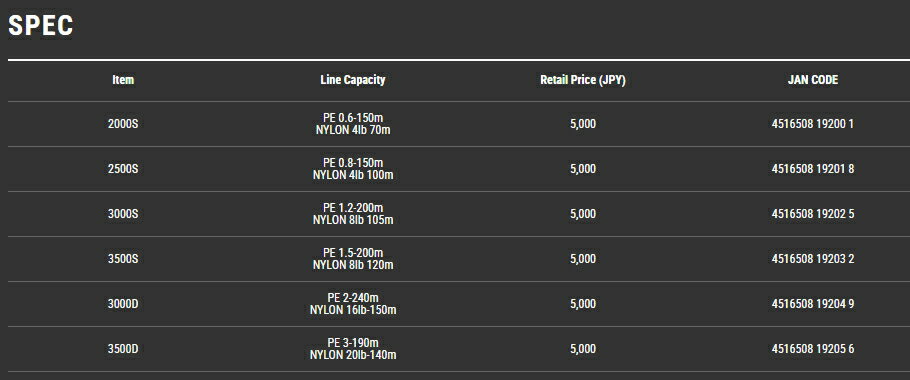デュライズ専用のオプショナルスプール デュライズに装着可能なオプショナルスプール。 各番手の標準シャロースプールに加え、3000番と3500番には汎用性の大きい深溝仕様を追加