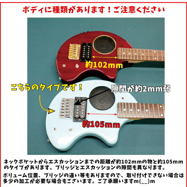 詳細 メーカー名 maniac collection 商品名 マニアックコレクション オリジナルピックガード サイズ 初期型ZO-3 105mm/35mm 説明 ZO-3用のピックガードです。スピーカーリング部分は直径100ミリくらいになっています。 下記サイズの物に適合します。種類がありますのでご注意願います。 ・ネックエンドからエスカッションまでの距離が約105mmのタイプ。 ・ブリッジプレート下からボリュームPOT中心までの距離約35mmのタイプ。 ・LEDが21フレット目上方にあるタイプ(22フレット目にあるタイプには使用不可)。 「参考画像2、参考画像3」を参照の上ご判断をお願いします。 切りっぱなしなので面取り等しておりませんが、大き目のカッターでも面取りできますので、エッジが気になる方はご自身で面取りしてください。 ボディの穴開けが嫌な方のために、取り付けネジ穴無しにもできます。ご注文時に選択してください。 ピックガード以外は商品ではありません。取付用のネジも付属いたしません。 素材について アクリル3ミリ素材を使用しカットしました。 配送について ※ネコポス配送不可の商品です。 こちらの商品を含む場合の同梱は、宅急便の送料が適用されます。