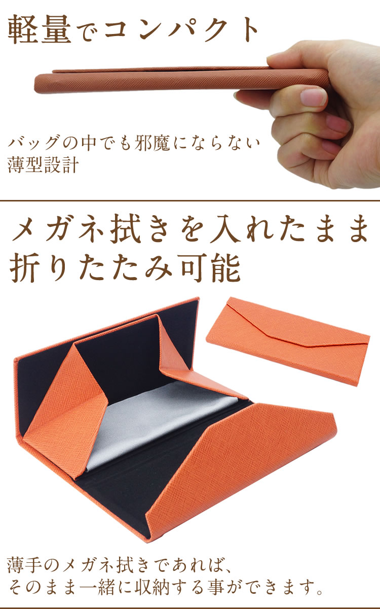 ●スリムで超軽量!折畳式メガネケース● バッグの中でかさばらない超薄型設計。 使う時は、簡単に組み立てる事ができます。 ●ワンタッチ開閉● マグネット式なので、片手で開け閉めする事ができます。 ●シーンを選ばないレザー柄デザインを使用● 落ち着いた色味の中からお選びいただけます。 【商品仕様】 本体サイズ(折りたたみ時):約6.5cm×16cm 重量:約71g 個数:1個 生産国:中国 ※ロットにより、側面の素材が画像と異なる場合があります。予めご了承ください。 ※お使いのモニターにより、色味が画像と異なる場合がございます。 ※表面のプリント位置等が商品によって異なります。 ※輸入商品の為、若干の色ムラや小傷等がある場合がございます。 ※製造時に付着した繊維等が内側に見られる場合がありますが、未使用品となりますので 乾いた布等で、軽く拭き取ってください。 ※仕様は改善の為に予告なく変更する場合があります。 ※上記を理由での対応は行っておりません。予めご了承の上お買い求めください。 ※メール便での発送は(ポスト投函)代金引換、日付指定やあす楽の対応はできませんのでご了承ください。
