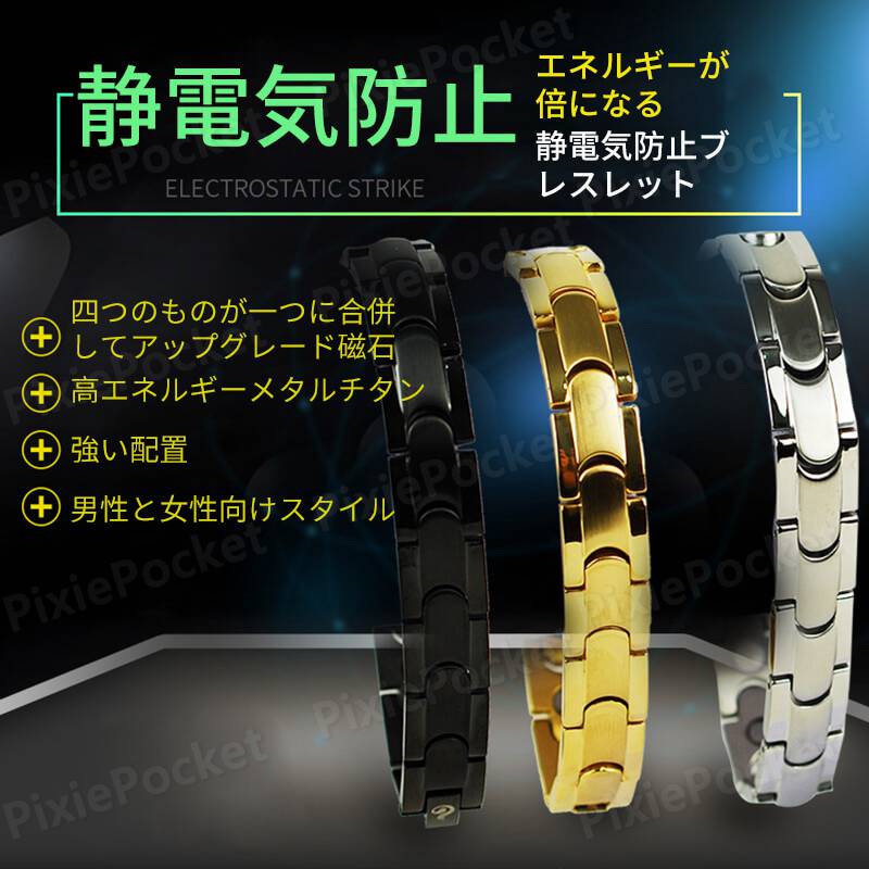 製品名:磁気療法ブレスレット 仕様:4つの強力な磁石4つの黒いゲルマニウム4つの遠赤外線4つの負イオン サイズ:21cm(サイズ変更可能) カラー:ブラック/ゴールド/シルバー スタイル:男性向け/女性向け 材質:高エネルギー純チタン+強力磁石+黒色ゲルマニウム+遠赤外線+負イオン