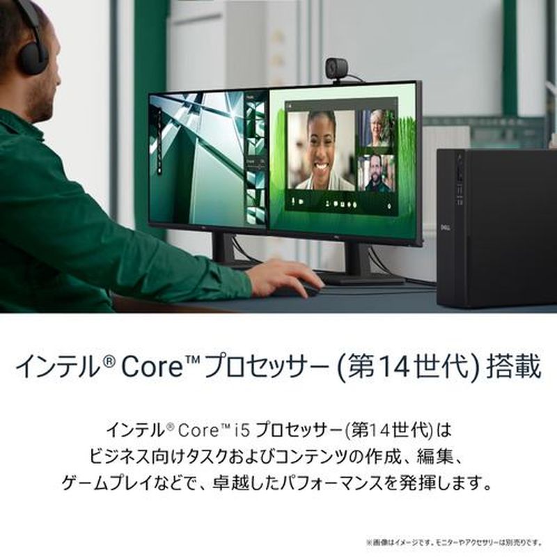 <商品概要> 本モデルは、第14世代 Intel Core i5-14500 vPro プロセッサーを搭載した 高性能ビジネスデスクトップです。14コア・最大5.0GHzの高速処理能力により、 Office作業・Web会議・データ処理など幅広い業務を快適にこなせます。 前面・背面に豊富なUSBポートを備え、HDMI/DisplayPortにも対応。 DVDスーパーマルチドライブも搭載し、ビジネス用途に必要な機能をしっかり網羅した1台です。 <おすすめポイント・特徴> 第14世代 Core i5-14500 vPro 搭載 14コア・最大5.0GHzの高性能CPUでビジネス作業が快適。 高速DDR5メモリ 16GB 最大4800MT/sの高速メモリでマルチタスクもスムーズ。 NVMe SSD(256GB / 512GB) 高速起動・高速アクセスで業務効率アップ。 豊富な前面・背面ポート USB 2.0 / USB 3.2 / USB-C / HDMI / DisplayPort / LAN など充実。 DVDスーパーマルチドライブ搭載 業務で必要なディスク読み書きにも対応。 セキュリティ対策も万全 Kensingtonロック対応でオフィス利用も安心。 <詳細スペック> ■Office Office Home & Business 2024 選択可能 ■プロセッサー Intel Core i5-14500 vPro(14コア / 最大5.0GHz) ■OS Windows 11 Pro ■グラフィックス 内蔵グラフィックス ■メモリ 16GB(1×16GB DDR5 / 最大4800MT/s / 非ECC) ■ストレージ 256GB または 512GB NVMe SSD(TLC) ■光学ドライブ 8x DVD+/-RW/RAM(9.5mm スリムライン) ■前面ポート USB 2.0 ×2 USB 3.2 Gen1 ×1 USB 3.2 Gen1 Type-C ×1 ヘッドセットジャック ×1 ■背面ポート USB 2.0 ×2 USB 3.2 Gen1 ×2 DisplayPort 1.4a ×1 HDMI 2.1 ×1 LAN(RJ45 / 1Gbps)×1 ■ネットワーク 有線LANのみ(Wi-Fiなし) ■付属品 Dell KB216 日本語キーボード(有線) Dell MS116 USB光学マウス(ブラック) 電源コード ■商品状態新品 ■保証メーカー保証付き ※こちらの商品は初期不良の場合も含めてメーカー直接サポートのみとなります。 サポートを受ける際はメーカーサポート窓口までご連絡ください。 ■備考 本商品は法人限定・代引き決済不可の商品になります。ご法人様の確認に関しましてはご注文者情報にて確認できない場合、ご連絡をさせていただきます。条件に当てはまらない場合に関しては誠に恐れ入りますが、ご注文をキャンセルとさせていただきます。 製品仕様詳細についてはメーカーホームページをご参照ください。他サイトでも併売しているため、万が一、在庫完売時はご連絡の上、ご注文のキャンセル処理を手続きさせていただきます。 ■対象ユーザー:法人 企業 在宅ワーカー 初心者 ビジネスマン ■利用シーン:ビジネス テレワーク Office作業 データ処理 Web会議 ■関連キーワード:Dell デル デスクトップ 第14世代 Core i5 DDR5 SSD HDMI DisplayPort DVD ビジネスPC