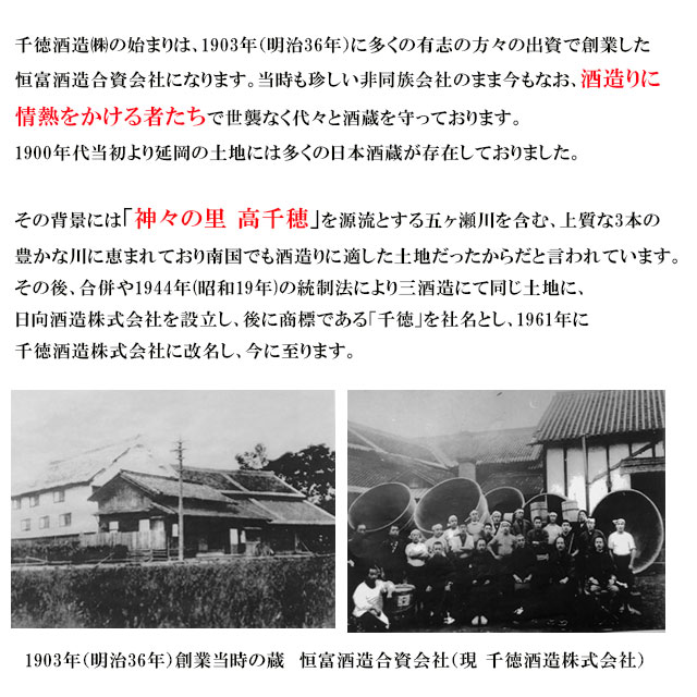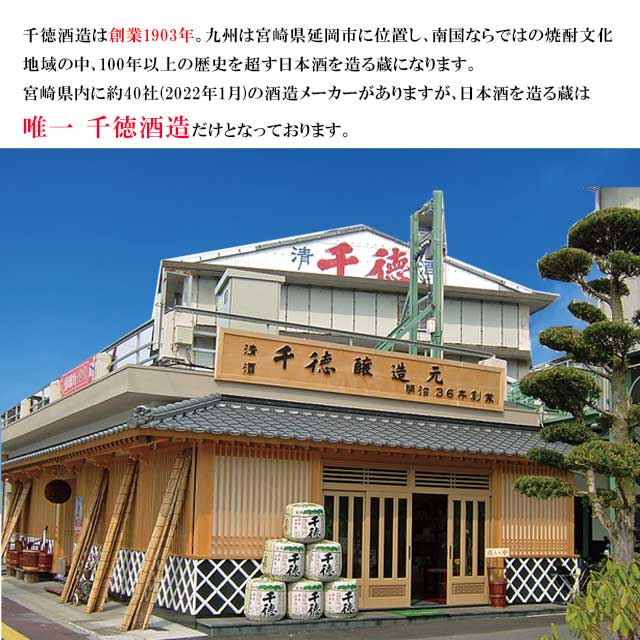 商品詳細 ■商品番号 077908 ■商品種別 清酒 ■内容量 720ml ■アルコール度数 15度 ■精米歩合 50% ■蒸留方法 - ■メーカー 千徳酒造(株) ■原材料 米(山田錦 宮崎県産米)/米麹(国産米) コメント 昔ながらの伝統と技術で高千穂産の酒造好適米山田錦を50%以下になるまで磨き上げ、総米700kgを手洗いし、米と米麹だけで醸したさわやかな口あたりの酒。神々の里 高千穂を水源とする五ヶ瀬川の伏流水を仕込水に使用。明治36年創業(1903年)鮎の里宮崎県延岡市で生まれた伝統の銘酒。