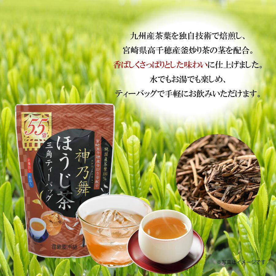 「ほうじ茶三角ティーバッグ」は、香ばしさとさっぱりとした後味が特徴の本格ほうじ茶です。九州産の茶葉を独自の技術で焙煎し、宮崎県高千穂産の釜炒り茶の茎部分をカットして配合しました。この特別な製法により、香り豊かで、すっきりとした味わいのほうじ茶が生まれました。三角型ティーバッグの便利さお茶が三角型のパック内で広がり、豊かな香りと味を引き出すため、お湯でも水でも簡単においしく抽出できます。ティーバッグタイプなので、お手軽に本格的なほうじ茶を楽しむことができ、後片付けも簡単です。特徴と利便性・九州産茶葉を焙煎し、高千穂産の釜炒り茶をブレンド。・香ばしい香りとさっぱりとした後味で、どんなシーンにもぴったりです。・水でもお湯でも抽出可能なので、季節や気分に合わせてお楽しみいただけます。手軽に本格的なほうじ茶をお楽しみいただける「ほうじ茶三角ティーバッグ」。リラックスしたいひとときや食事のお供にぜひご利用ください。内容量:143g(2.6g×55P)原材料名:緑茶(高千穂釜炒り茶配合)原料原産地名:国産賞味期限:製造から1年関連商品はこちら鹿島園本舗 神乃舞 緑茶 抹茶入り ティ...1,080円鹿島園本舗 神乃舞 玄米茶 ティーバッグ...1,080円鹿島園本舗 神乃舞 緑茶 抹茶入り ほう...1,580円鹿島園本舗 神乃舞 ほうじ茶 ティーバッ...1,580円