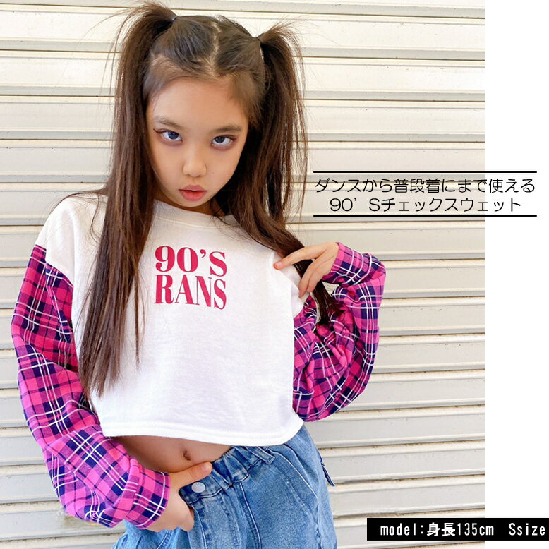 商品情報素材綿100%サイズ【XS】着丈:33 身幅:42 肩幅:44.5 袖丈:42【S】着丈:36 身幅:44 肩幅:46 袖丈:47【M】着丈:39 身幅:47 肩幅:47.5 袖丈:50【平置き実寸 単位:cm】商品説明ヒップホップ、R&B、ジャズ、ストリート、チア、ロックなど、あらゆるダンスにもデイリーにも使えるアイテムをご提案。ダンス系カジュアルファッションブランド【RandS by saleroom】による完全オリジナル切替デザインの春チェックスウェットです。本体は柔らかい薄手の裏毛。袖がチェックになっているトレーナーです。袖と本体が配色切替デザインになっており、胸元には同系色で90’s RANSのプリントが施されております。キッズから、ガール、ジュニア、レディース(小柄な大人Sサイズぐらいまで着用できる方)まで着られる仕様となっております。胸元の大人っぽいロゴもポイントで、チェックのカラーと同系色になっていてさらにオシャレ感アップ。絶妙な丈感と幅感でシルエットは定番的なので、様々なシーンでも活躍しそう。寒い日にはハイネック・タートルネックやブラウス・シャツなどを重ね着しても◎定番的なシルエットは様々なボトムとも好相性。レッスンコーデっぽくスウェットパンツ、トレンド感のあるデニムのワイドパンツ・フレアパンツや細身のスキニーパンツもGOOD。同じチェック柄のスウェットダボパン(b5154)やフレアスカート(b5164)とセットアップにして、K-POPアイドル風にも◎チェック以外でも同じ系統のカラーのボトムと合わせると一気に衣装風に。ステージ映えさせるのもオススメです。アクセサリーや帽子、小物などで、カッコよくデコるのもオススメ。普段着にももちろん、ダンスレッスン、ダンス衣装、ステージ衣装、コンテストやイベントにもおすすめ。小学生、中学生などのチームやサークル活動の衣装や、友達同士、姉妹、親子でも色違いなどで、おそろいで双子コーデやリンクコーデでも使いやすいです。カラーイエローピンクライトエメラルド配送について★ご注文金額が3980円(税込)以上の場合、送料無料になります。沖縄・離島の場合はご注文金額9800円(税込)以上で送料無料となります。■ゆうパケット(メール便)〇合計【18】まで一口300円で発送可能。こちらの商品は【14】です。同じ商品の場合、こちらは1枚までゆうパケット1口で発送できます。ゆうパケット:1口300円 2〜3日でお届け(発送にかかる日数はあくまで目安です。お急ぎの場合は宅配便をオススメしております。) 追跡可能 ポスト投函 日付時間指定× 代引き× 投函後の事故については 責任を負いかねます。☆★☆■宅配便〇地域によって配送料が異なります。商品到着ご指定可能。お急ぎの場合は、宅配便をオススメしております。※ご不明な点はお問い合わせください。注意モニターの発色の具合によって実際のものと色が異なる場合がございます。ニット製品は伸縮性が特徴になりますので、縫製・プレス等によって多少サイズや風合いの差が生じる場合がございます。生地の特性上まれに白っぽくなっている部分がありますが、洗濯等により自然に戻ります。ニットソーなどの商品には、少し毛羽立ちなどが生じます。【日本製/綿100%】90'Sチェックスウェット【メール便14】/クロップド丈/トレーナー/スウェット/ロゴ/レトロ 長袖 キッズ/ジュニア/ガールズ/女の子 ダンス/ヒップホップ ダンスウェア/衣装 シンプル 無地 カラフル コットン 原宿系/オルチャン/韓国 3980円以上送料無料/ロゴプリントトレーナー/メール便可/ダンス/衣装/通学/オルチャン/原宿/オシャレ/ジュニア/女の子/XS・S・M/キッズ/ガールズ 5