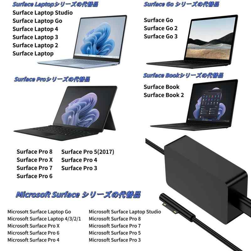 Surface 充電器 サーフェス 充電器 Microsoft Surfaceと互換品 があります 65W 44W 36W 24W Cshare 15V 2.58A Surface Pro 9/ Pro 8/ Pro 7/ Pro X/Pro 6/ Pro 5/ Pro 4/ Pro 3 Surface Book/Laptop/Go Surface 電源アダプター入力は AC 100-240V 1.5A 50-60Hz、出力は 15V 4A 65W。USB ポートは 5V-1A 5W。互換性のある Microsoft 24W 36W 44W にも適用可能で充電効率が高い。互換 Microsoft 充電器:互換 Surface Pro9、Pro8、Pro X、Pro7、Pro6、Pro5/2017、Pro4、Go、Go2、Go3、Go4 タブレット、BOOK1、BOOK2、Laptop、Laptop2、Laptop3、Laptop4、Laptop5、Laptop Go と互換性があり、互換 Surface AC アダプター 1706/1800/1735/1736 に対応します。互換 Microsoft 充電器:5V/1A の追加 USB 2.0 充電ポートを備え、携帯電話やパソコンなど他の機器も同時に充電可能。注意:USB 充電ケーブルは含まれません。安全な充電器:このSurface Pro電源アダプターはRoHS、CE、FCC等の複数の認証をパスしており、認証により、先進的な電気回路と内蔵の安全装置を備えており、オーバーヒート保護、過電流、過電圧、過負荷、短絡保護を提供できます。国際規格認証:PSEマーク取得、CE/FCC/RoHSトリプル認証を併せ取得、ISO 9001:2015品質管理システム適用。万が一商品に不具合がございましたら、どうぞ遠慮なくご連絡下さい。無償交換あるいは返金の対応は可能です。
