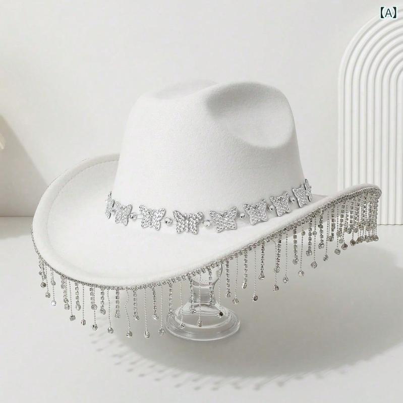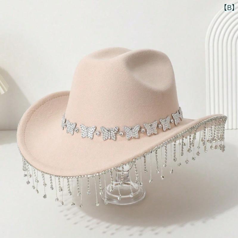 2帽子 レディース ウエスタンハット テンガロンハット カウボーイハット 宝石 チェーン ラインストーン フリンジ パーティー イベント