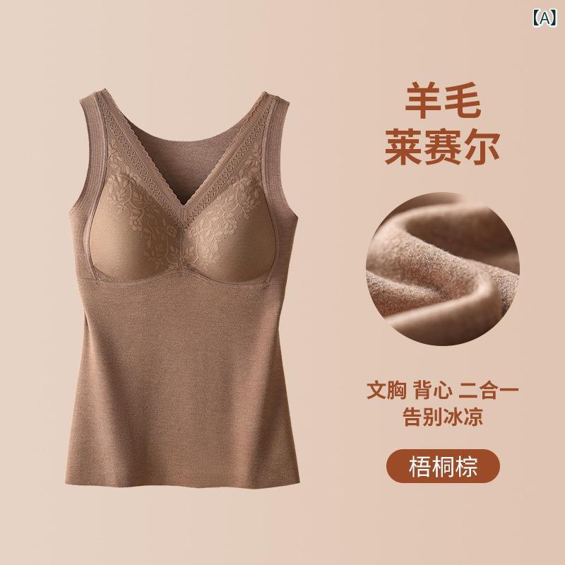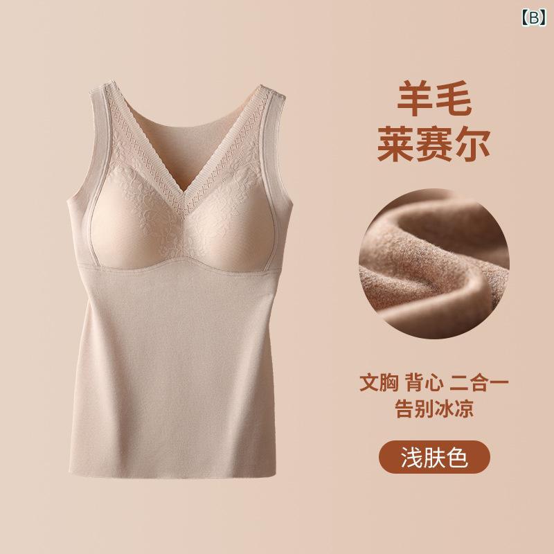 ベスト レディース 秋冬 ウール 両面起毛 シームレス 保温 ブラパッド付き 肌着 インナー 重ね着