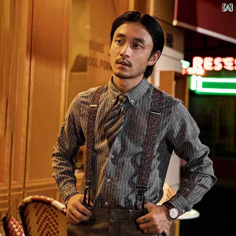 シャツ メンズ 男性用 デニム 長袖 ストライプ ウォッシュ加工 レトロ トップス カジュアル 普段使い 春秋