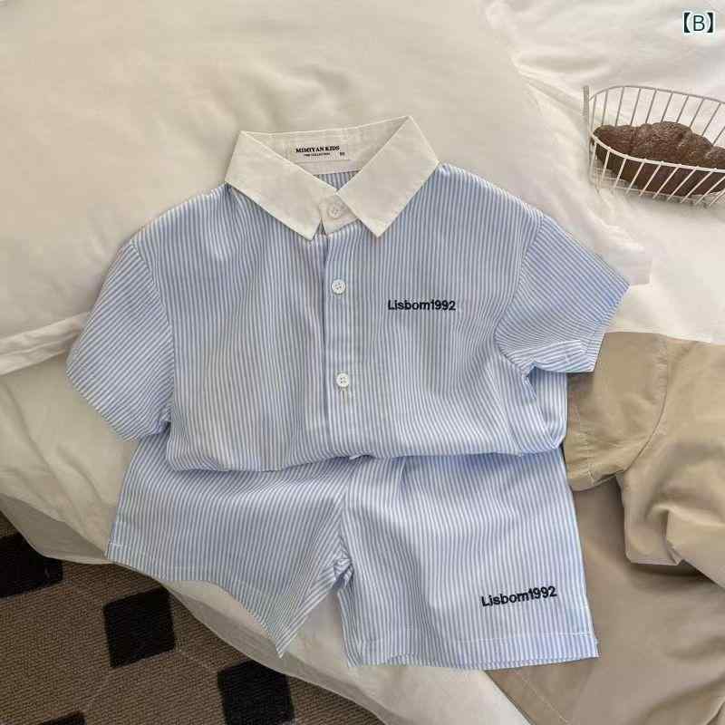 子供服 男の子 半袖シャツ セットアップ 韓国風 ベビー服 夏服 アルファベット柄