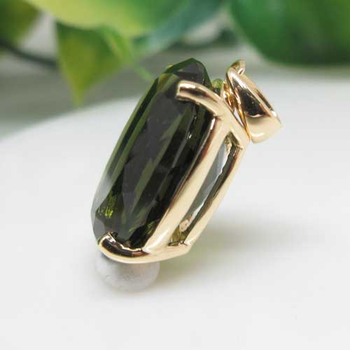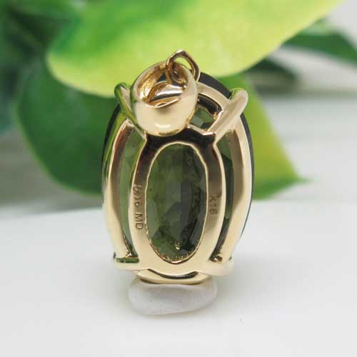 商品名【テクタイト】 ☆モルダバイト オーバルカット K18 ペンダントトップ※チェーン別売りサイズ 約14×10ミリ説明 【自然の掟、魂の浄化、生命力等】 宇宙と地球の融合エネルギー 人類の起源に深く作用する癒し(心のやすらぎや精神安定など心身に強く作用)持つ人の力を呼び覚まし隠れた才能、能力を目覚めさせるといわれています。 また、宇宙と地球の調和を促進する働きがあるため地上に初めて降り立った魂(スピリット)が抱く戸惑いと孤独感といった感情や、誕生のルーツにまで作用し多くの気づきを与えるとされてきました。 チェコのモルダウ川流域で発見された深い緑色のモルダバイトは、起源は約1450万年前にドイツ・バイエルン州ネルトリンゲンに落下した巨大隕石によるものと判明。隕石本体は高温で蒸発しましたが、落下の時の衝撃と高温で地表の岩石が融解、気化し上空に巻き上げられて固まり「テクタイト(自然ガラス)」となり、モウダウ川流域に飛散したといわれています。 チェコでは永遠の愛を約束する石と伝えられ大切に守られてきました。1960年後半から、台頭してきたニューエイジと呼ばれる人々は魂を開放し、霊的な目覚めをもたらすこの石のエネルギーを絶賛しました。 ※天然石にはインクルージョン(内包物)クラック、多少の欠けなどが入るものがあります。ご了承ください(エネルギーには影響ございません) ※天然石のため色、模様、形状等が多少異なる場合がございます。 ※ご利用の画面や環境等により実物の色と多少違って見えることがあります。※波動は効果効能を示すものではありません。