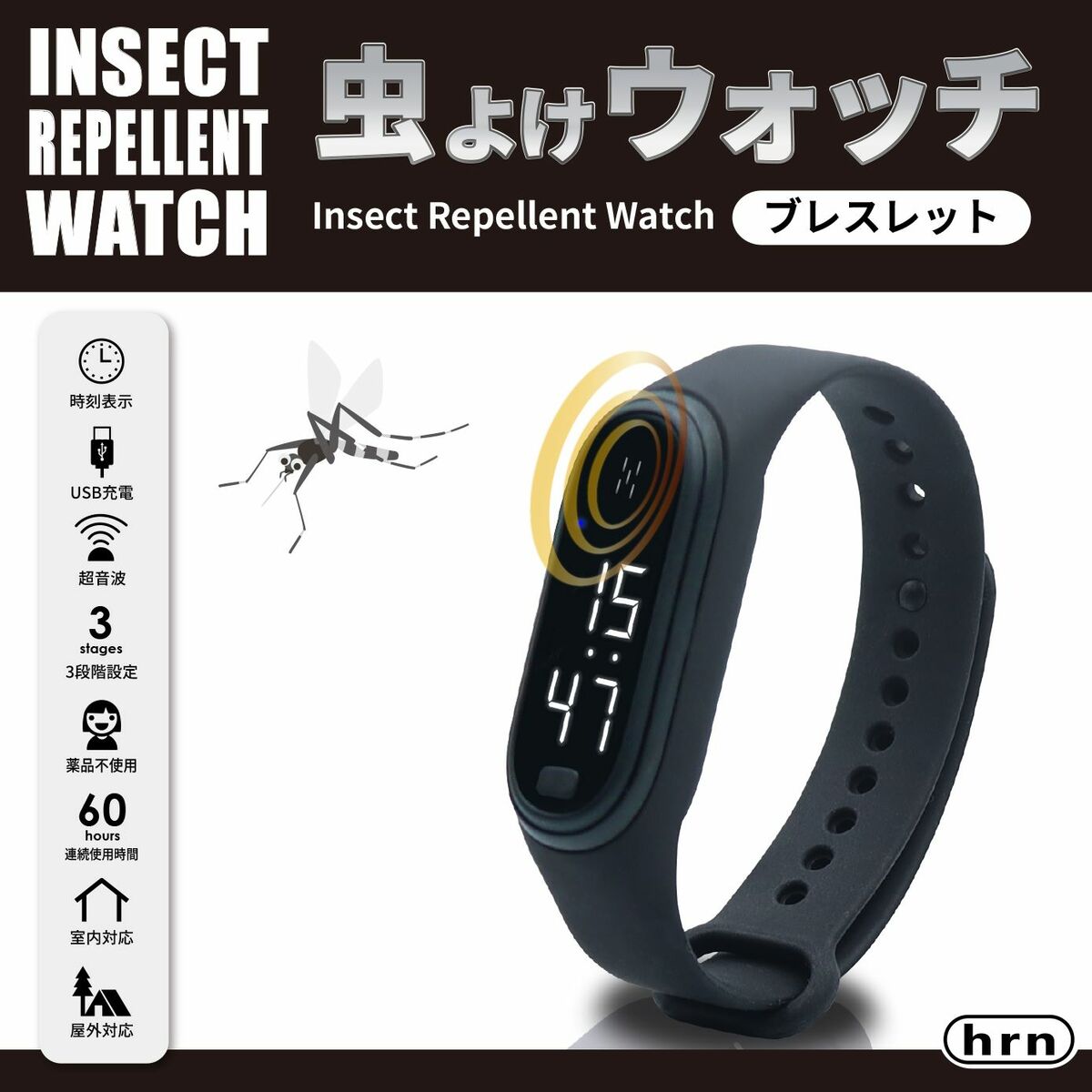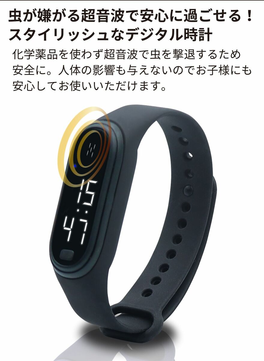 この商品は 超音波式 虫よけウォッチ ブレスレット 時計 デジタル時計 ランニング 散歩 アウトドア キャンプ 釣り 登山 スポーツ 観戦 無臭 無香 ポイント 虫が嫌がる超音波で安心に過ごせる! ショップからのメッセージ 納期について 4