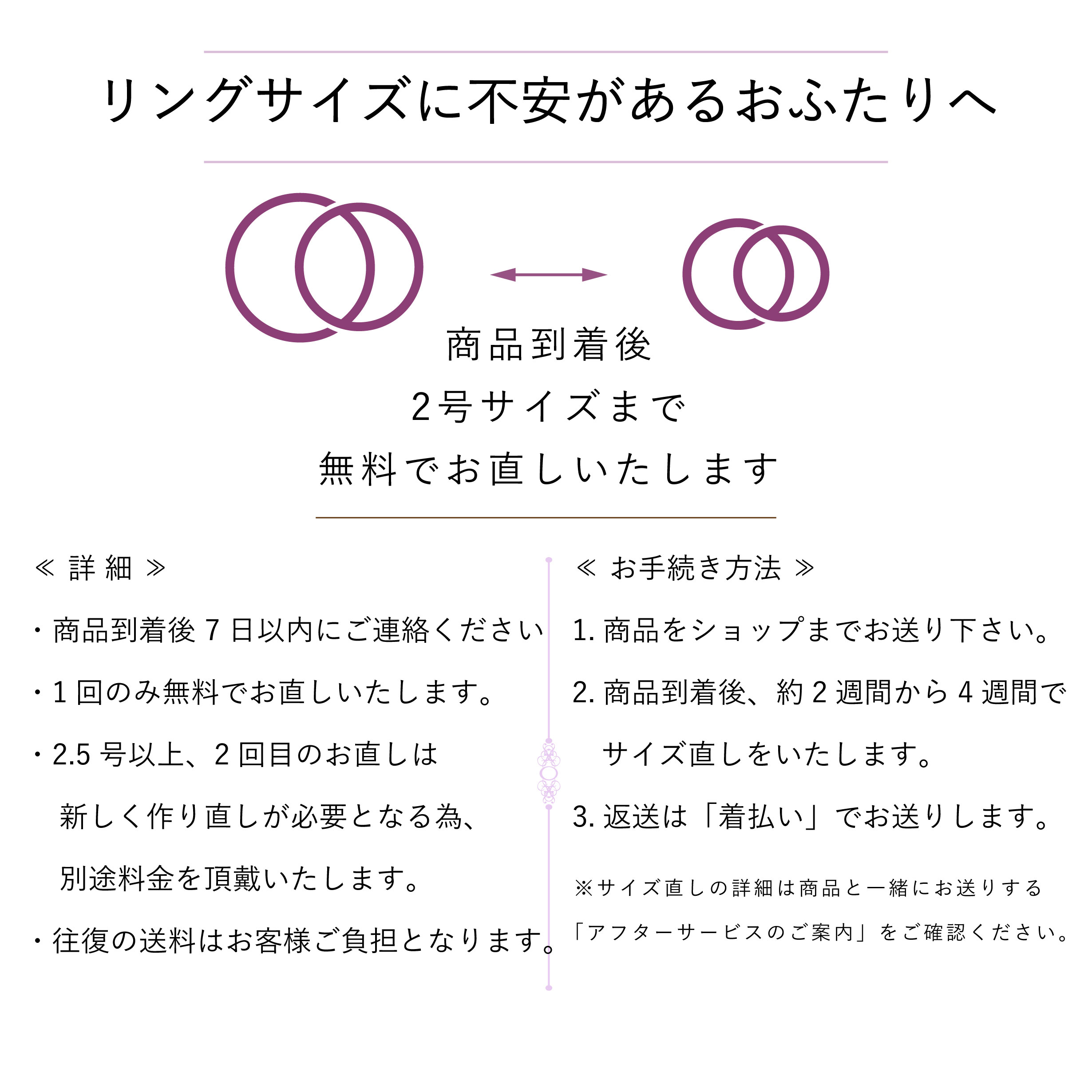 人気デザイン ダイヤモンドリング プロポーズリング エンゲージリング 婚約指輪 ご褒美リング 結婚記念日リング 0.01ct ダイヤモンド デザインリング Câlin カラン Câlinとはフランス語で「愛らしい」 愛らしいあなたへ、沢山の愛を詰めた ダイヤモンドリングをお届けします。 楽天ランキング 結婚指輪・マリッジリング部門 ブライダルジュエリー・アクセサリー部門 ジュエリー・アクセサリー部門 3部門で1位を獲得いたしました!! 現在も更新中です K10 K18 イエローゴールド ダイヤモンドリング スマートな切替デザインのリングに上質なダイヤモンドを一粒。 ストレスを感じない着け心地の良さで日常生活に溶け込みます。 カジュアルからフォーマルまで、様々なシーンで大活躍します。 【 リングの素材をお選びいただけます】 ・K10イエローゴールド(10金) ・K18イエローゴールド(18金) 2種類からご注文時にお選びください。 <ゴールド素材について> K18とK10の違いは金が含まれている割合です。K24を100%(純金)として、 K18は75%、K10は約42%が金になります。 K10とK18、それぞれ良さがあり、それぞれに特徴があります。 K10は、K18よりも強度があって変形しにくくキズもできにくいのですが、 かたさがある分衝撃にはあまり強くありません。 こまめにお手入れしないと変色してしまいますが、磨き直しをすれば輝きはすぐに戻ります。 K10は手ごろな価格でお求めいただけるのもメリットのひとつです。 K18は、金の純度が高い分、価値が高く、高級感があり、輝き方がより増します。 また、K10よりもアレルギー反応が出にくいと言われています。 K10よりやわらかいので、着用時には少し注意が必要ですが、 やわらかさがあるということは、衝撃などで割れにくく、 日中ながく身につけられる方の場合、K18の方が向いています。 【 お届け日について 】 こちらのリングは約4週間ほどでお届けいたします。 ※ご注文時に登録できる配達指定日は最短ではございません。 より早いお届けを希望される場合は配達日指定を入力せずにご注文ください。 【 嬉しい10大特典付き 】 1,セミデザインオーダーが可能 2,サイズ直し無料 3,豊富なリングサイズ0号〜30号 4,抗菌・清潔・日本製 リングゲージ無料貸出し 5,名入れ刻印無料 6,ギフトボックスプレゼント 7,メッセージカードプレゼント 8.充実したアフターサービス 9,レビュー投稿キャンペーン実施中 10,安心 安全のMade in Japan ◆ 1.選べるリング素材 ◆ ・K10(10金) ・K18(18金) ◆ 2.サイズ直し無料 ◆ お買い上げサイズから2号サイズまでの サイズ変更は無料で承ります。 ・初回1回のみ ・商品到着後7日以内にご連絡をください ※往復の送料はお客様負担※ 2.5号以上のサイズ変更、2回目サイズ変更については 新しく作り直しが必要な為、別途お見積りをご案内いたします。 (送料+代引き手数料:お客様負担) ◆ 3, 豊富なリングサイズ ◆ 0号〜30号までご用意しております 偶数号・0.5号きざみでもご注文可能です。 0.5号のご希望は備考欄にご記入下さい。 19.5号以上は別途料金を頂戴いたします。 ◆ 4, リングゲージの無料貸出し ◆ 抗菌・清潔・日本製のリングゲージを無料で貸出しいたします。 サイズにご不安がある方はショップまでご連絡ください。 ◆ 5,名入れ刻印をお入れします ◆ 大切な記念日や愛のメッセージなどをリング内側にお入れいたします。 ・可能文字数:20文字程度 ・英数字のみ ※名入れ刻印は無料でお入れいたします。 ◆ 6,ギフトボックスプレゼント ◆ 誰もが憧れる箱パカリングボックスにお入れしてお届けします。 大切な想い出にピッタリの高級感あふれるレザー調デザインボックスです。 ※ボックスカラーやデザインが予告なく変更になる事がございます。 ◆ 7,メッセージカードプレゼント ◆ プレゼントと一緒に気持ちを伝えませんか? 余計な装飾が一切ない、気持ちを伝えるにはちょうど良い、 素敵なメッセージカードを3デザインご用意いたしました。 A,Happy Birthday(ハッピーバースディ) B,Special Thanks(スペシャル サンクス) C,I wanna be with you.(あなたのそばにいたい) ◆ 8,充実したアフターサービス ◆ ずっと長く着け続けてもらいたいから 充実したアフターサービスをご用意しております。 ◆ 9,レビュー投稿キャンペーン実施中 ◆ レビュー投稿をしていただきましたお客様全員に オリジナルアクセサリーをプレゼントいたします。 ◆ 10,職人の技 Made in Japan ◆ 併設している自社国内工房で全て製作しています。 ひとつひとつ手作業で仕上げ、 こだわりぬいたリングをお届けいたします。 ◆ 安心の品質保証 ◆ Guarantee Cardをおつけいたします。 保証期間は1年間となっております。 修理内容によっては保証期間内でも 有償修理となる場合がございます。 詳しくはショップまでお問合せください 商品詳細 選べる素材 K10 / K18 ダイヤモンド 天然ダイヤモンド 0.01ct リングサイズ 0号〜30号 ※偶数号・0.5号も可 名入れ刻印 リング内側にお入れいたします。 ・可能文字数:20文字以