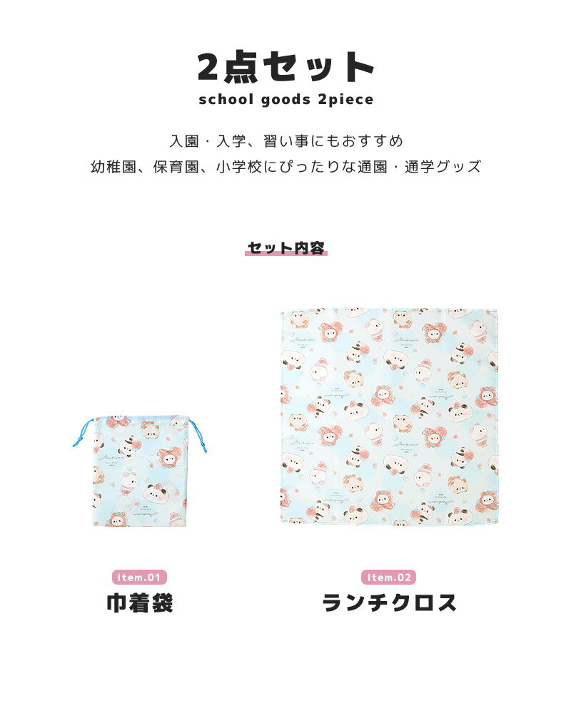 メーカー希望小売価格はメーカー商品タグに基づいて掲載しています 【対象】子供服 こども服 子ども服 キッズファッション キッズ きっず Kids KIDS 低学年 小学生 幼稚園 保育園 幼児 園児 学校 ベビー べびー baby BABY 赤ちゃん 男の子 男児 ボーイ ボーイズ BOY boy Boy BOYS boys 女の子 女児 ガール ガールズ GIRL girl Girl GIRLS girls ユニセックス 男女兼用 兄弟 姉妹 コーデ お揃い【さまざまなシーンにオススメ】通園 通学 幼稚園 保育園 小学校 スクール イベント 運動会 発表会 お出かけ お散歩 公園 お誕生日会 パーティー テーマパーク 遊園地 ハロウィン クリスマス バレンタイン お正月 ゴールデンウィーク デイリー 休日 お祝い 出産祝い 内祝い プレゼント【イメージ】デザイン かわいい 可愛い カワイイ キュート おしゃれ オシャレ お洒落 カジュアル お洒落着 【ショップ】zooland Zooland ZooLand ZOOLAND ズーランド ずーらんど ファッション アパレル ブランド 日本企画類似商品はコチラオバケーヌ もちもちぱんだ いーすとけん ラン660円~入園入学2点セット 入園入学セット 巾着 給食1,045円入園入学2点セット 入園入学セット 巾着 給食931円よく一緒に購入されている商品キッズ 靴下 福袋 ハッピーバッグ オバケーヌ1,890円オバケーヌ もちもちぱんだ いーすとけん 給食660円キャラクターショーツ 3枚セット キッズ 下着1,490円~2026/03/10 更新 SPEC 商品番号 251047set2 セット内容 2点セット ・巾着袋 ・ランチクロス 素材・組成 ポリエステル100% 撥水加工 サイズ ・巾着袋 タテ:約22cm/ヨコ:約18cm ・ランチクロス タテ:約43cm/ヨコ:約43cm ※表記サイズは平置きで採寸しておりますので、商品によっては多少の誤差が生じる場合がございます。 仕様 巾着袋/ネームタグ付き 注意事項 ・素材の性質により、摩擦や水濡れなどで色落ち、色移りする 恐れがありますのでご注意ください。 ・洗濯・乾燥機の使用はおやめ下さい。 ・付属品のお取り扱いには、ご注意ください。 企画・原産国 日本企画・中国製 ATTENTION ※モニター環境によって、色味が実際の商品と若干の誤差が生じる場合がございます。 関連商品はコチラ